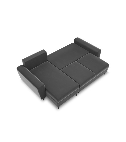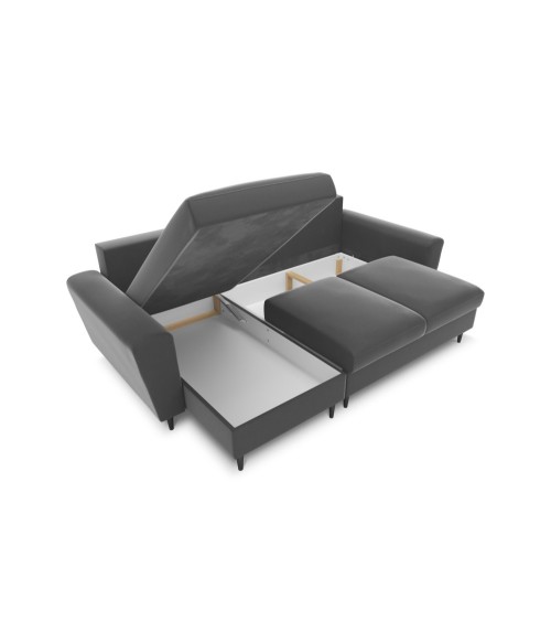 Canapé d'angle reversible, convertible 4 places velours gris clair