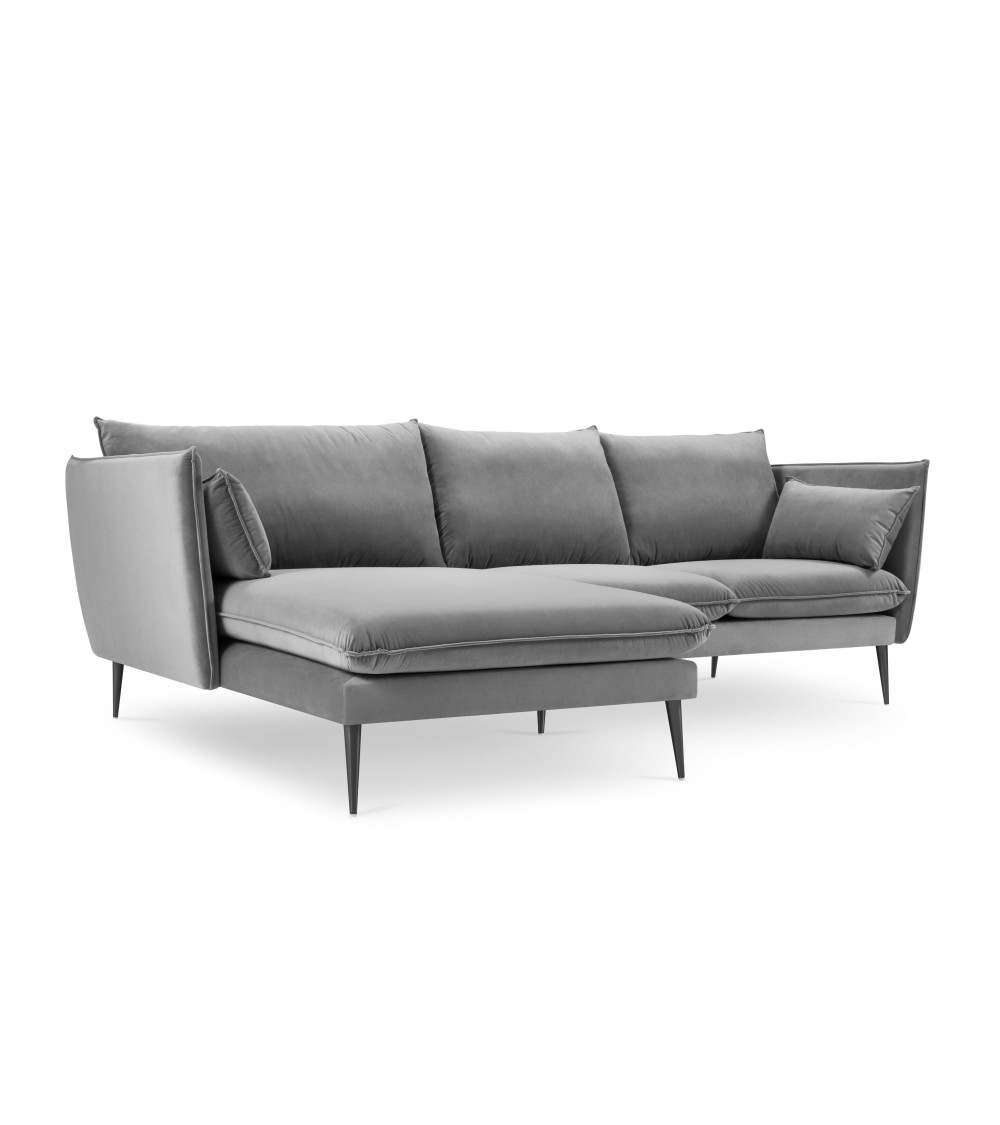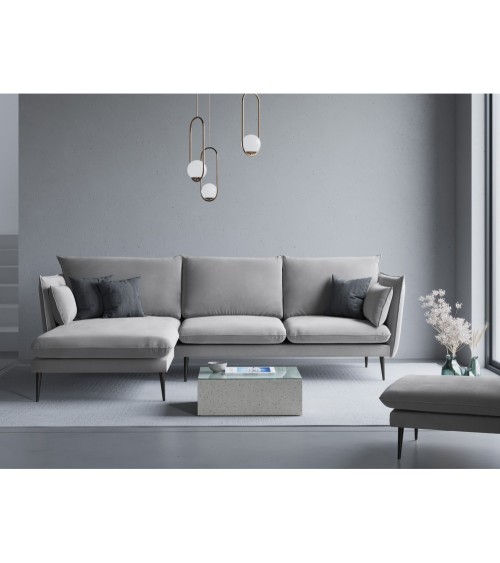 La collection Agate combine élégance et petites touches de modernité. Très confortable pour toute la famille, trouvez la pièce qui correspond le mieux à vos besoins ! Vous découvrirez dans cette collection un canapé d'angle, un canapé 4 places, un canapé 3 places et un canapé 2 places ainsi qu'un fauteuil, une chaise longue et un pouf. Tous ont un design épuré avec de grands coussins confortables et de beaux pieds métalliques fins en diagonale, dorés ou noirs. Leur revêtement en velours ajoute de la chaleur qui sera superbe dans nimporte quel intérieur.