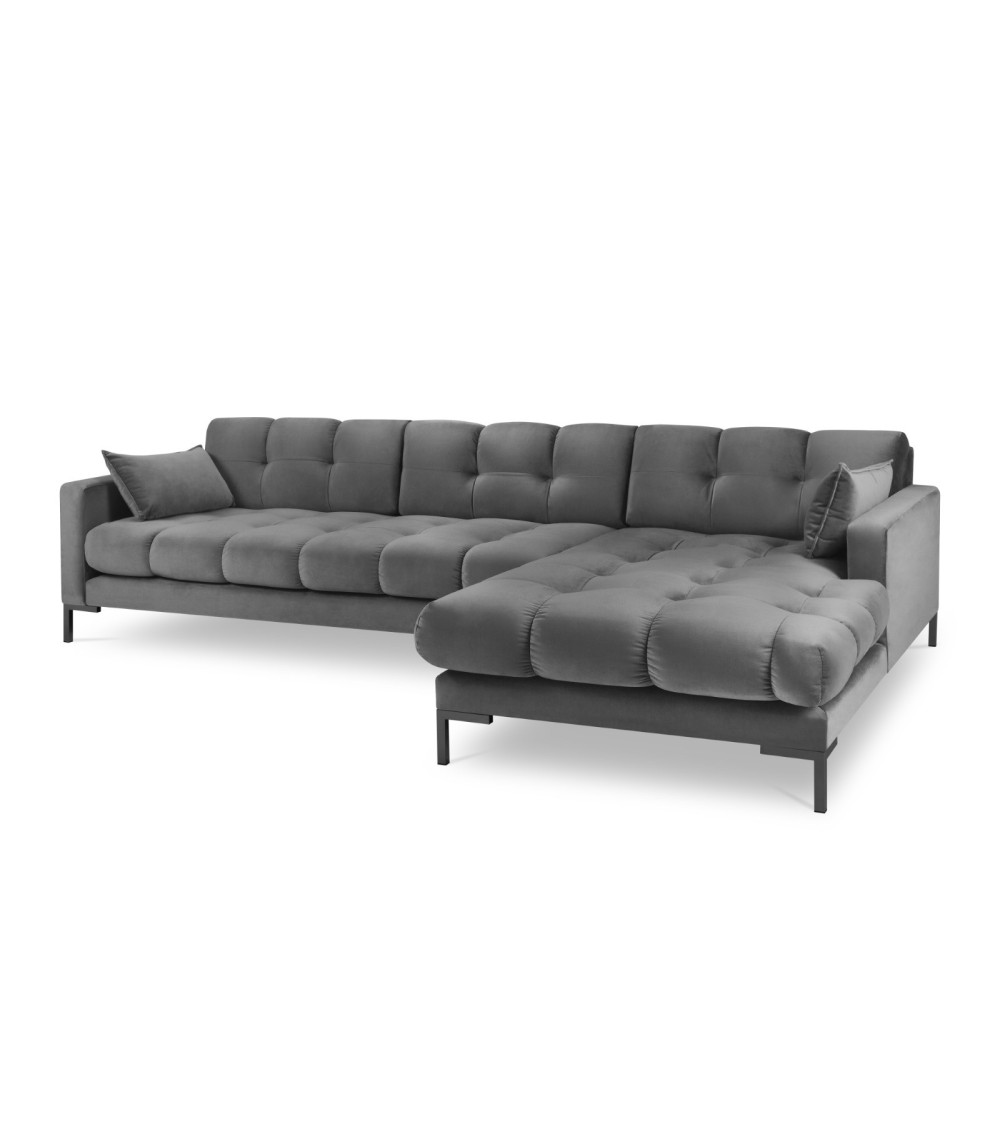 Canapé d'angle droit 5 places en tissu velours gris clair