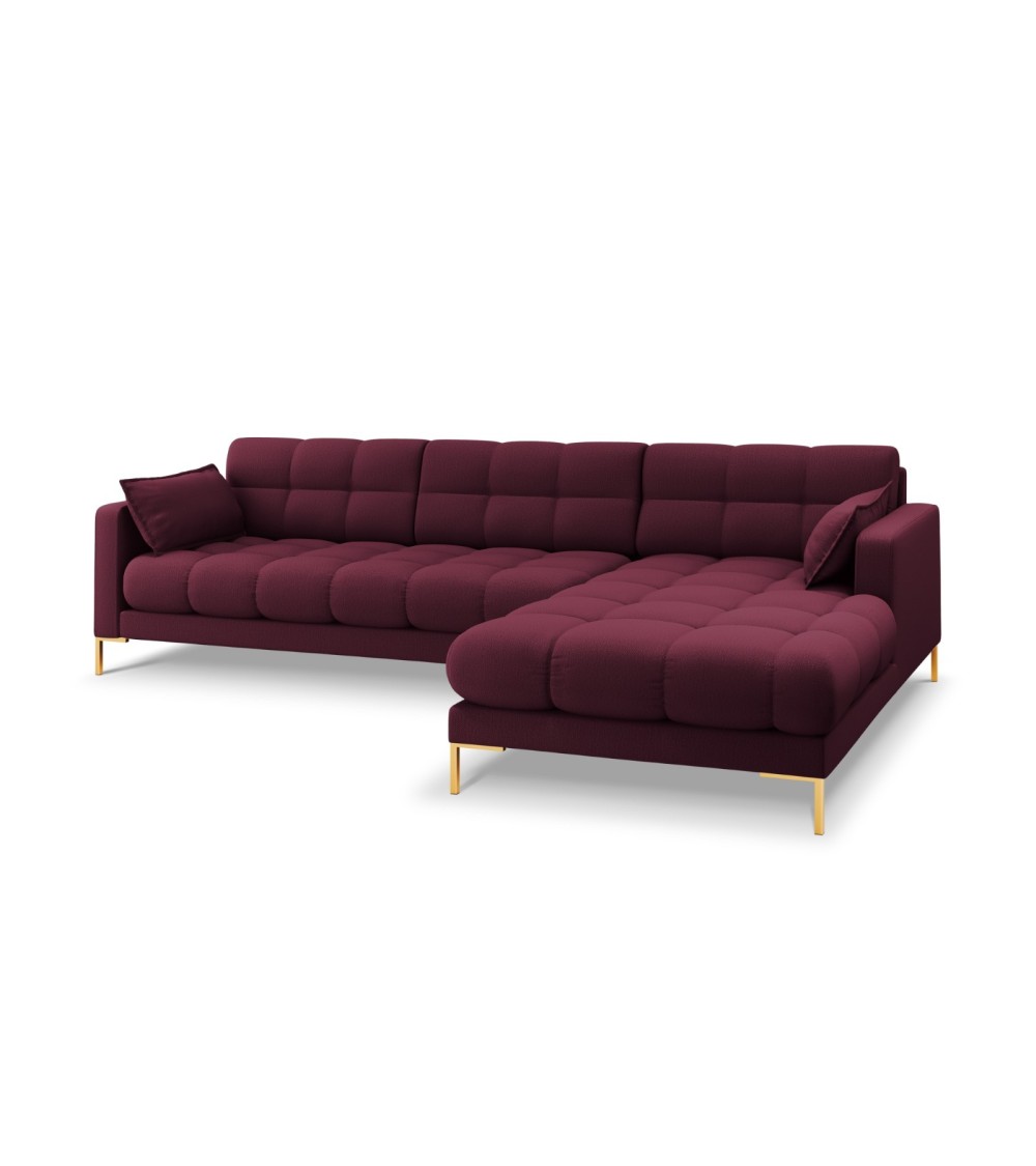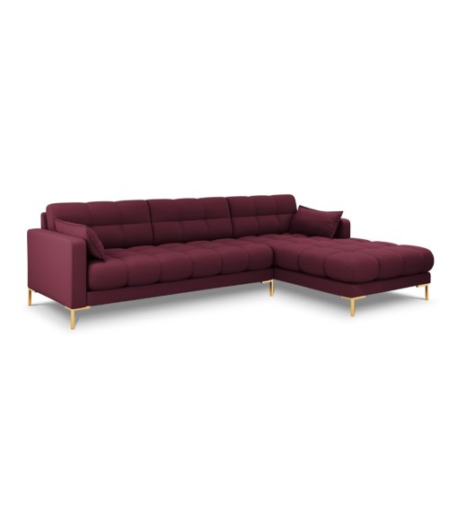 Canapé d'angle droit 5 places en tissu structurel rouge foncé