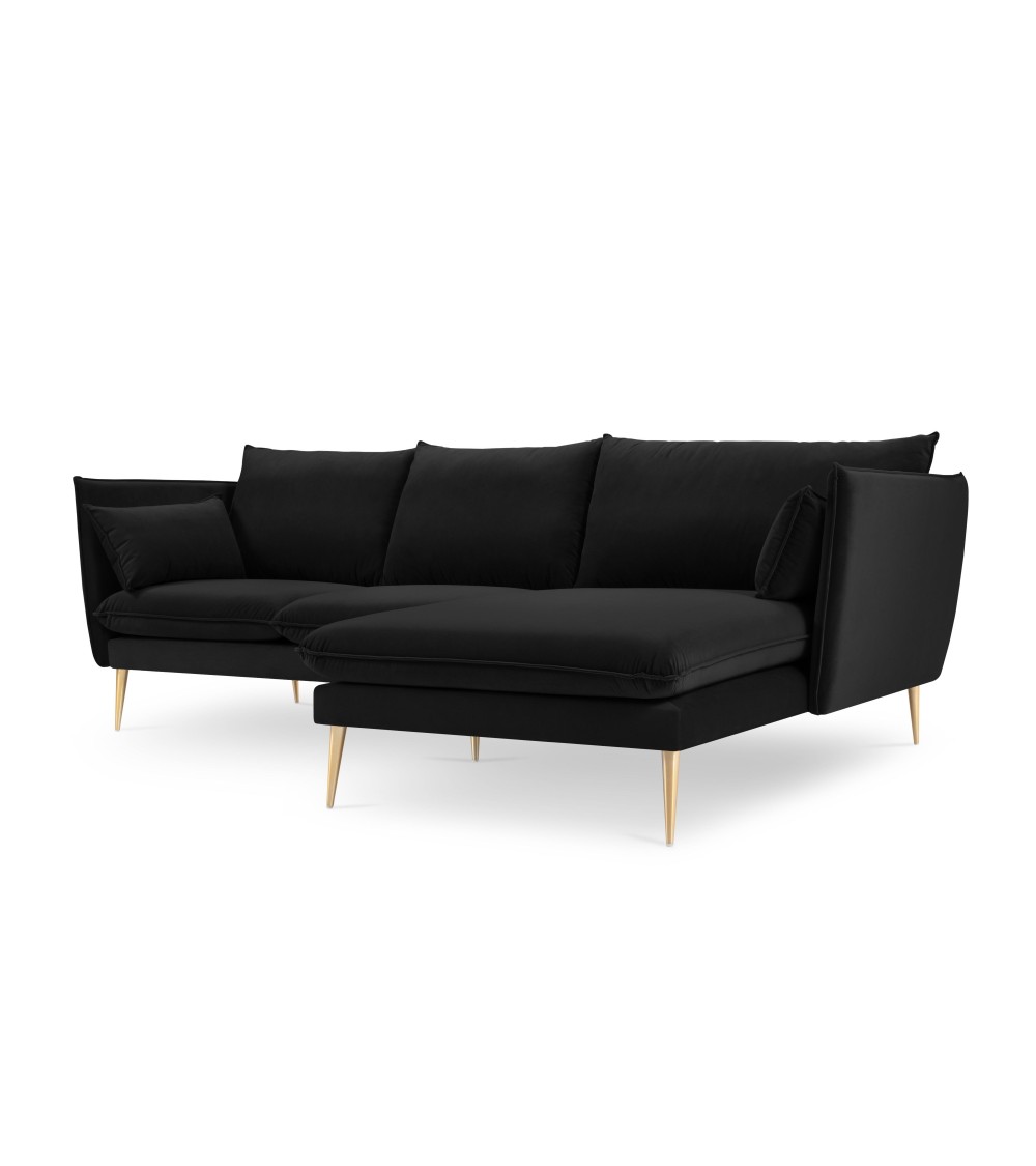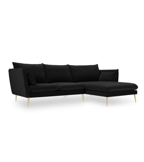 La collection Agate combine élégance et petites touches de modernité. Très confortable pour toute la famille, trouvez la pièce qui correspond le mieux à vos besoins ! Vous découvrirez dans cette collection un canapé d'angle, un canapé 4 places, un canapé 3 places et un canapé 2 places ainsi qu'un fauteuil, une chaise longue et un pouf. Tous ont un design épuré avec de grands coussins confortables et de beaux pieds métalliques fins en diagonale, dorés ou noirs. Leur revêtement en velours ajoute de la chaleur qui sera superbe dans nimporte quel intérieur.