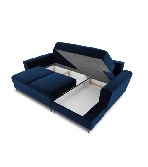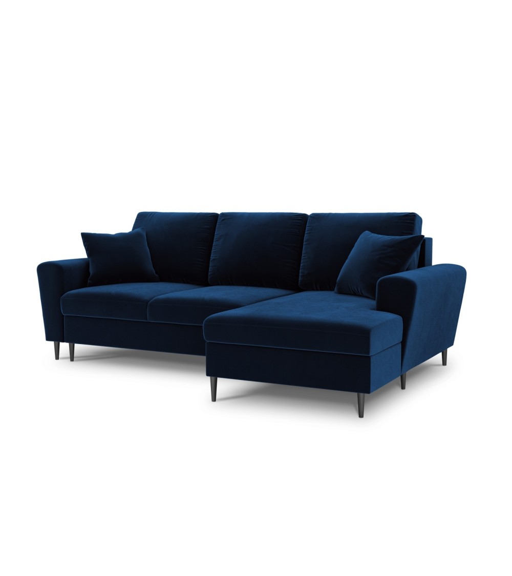 Canapé d'angle droit convertible 4 places en tissu velours bleu roi