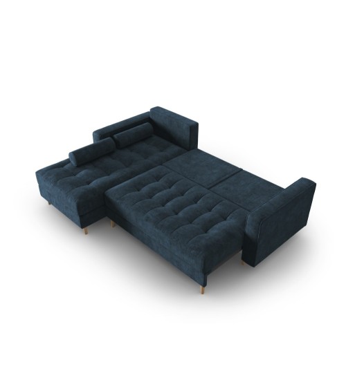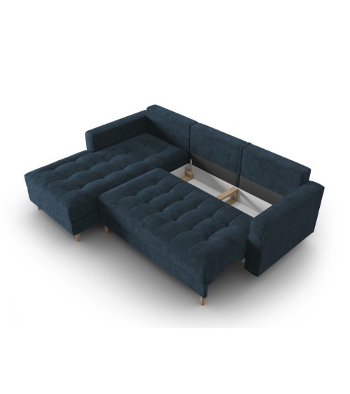 Canapé d'angle 5 places en tissu structuré bleu foncé