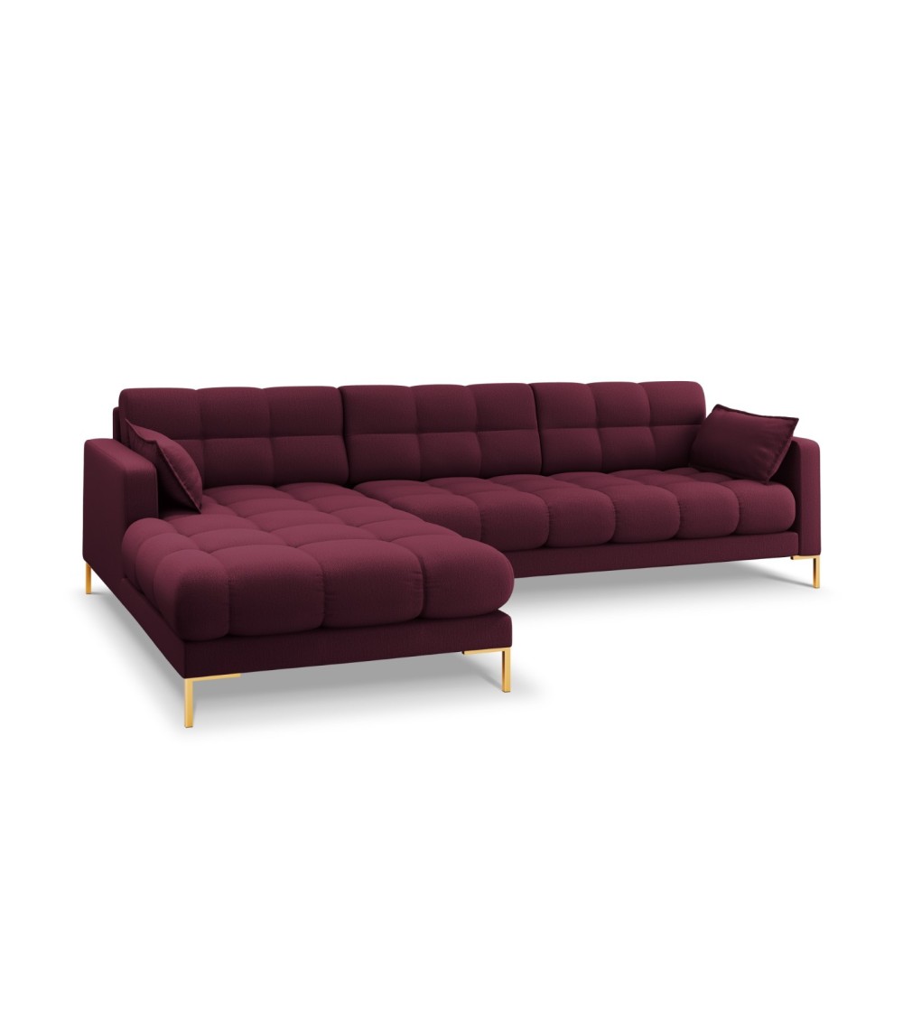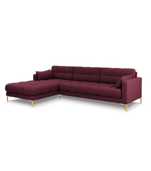 Canapé d'angle gauche 5 places en tissu structurel rouge foncé