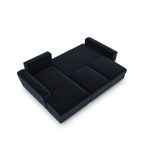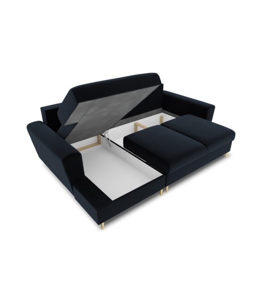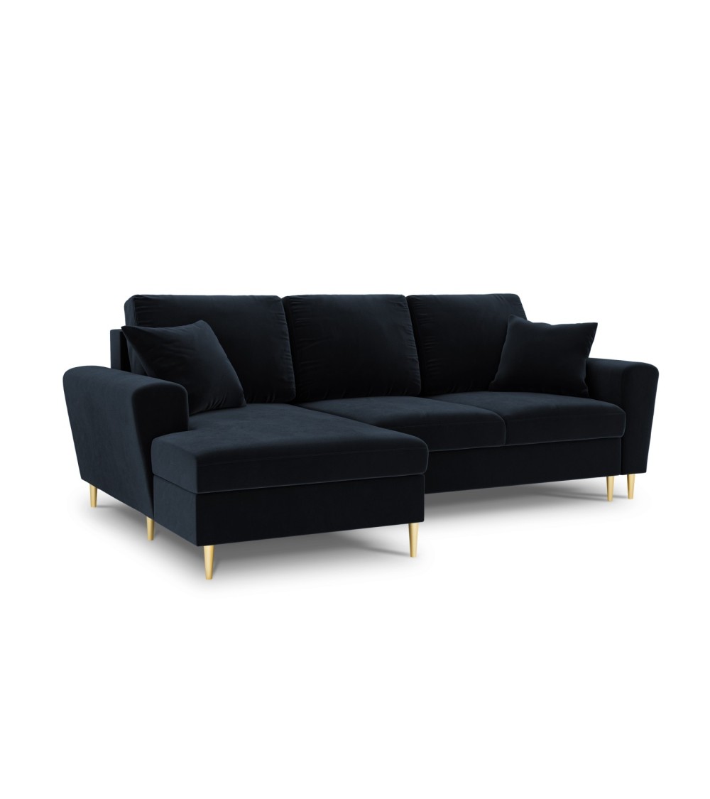 Canapé d'angle gauche convertible 4 places en tissu velours bleu foncé