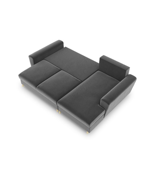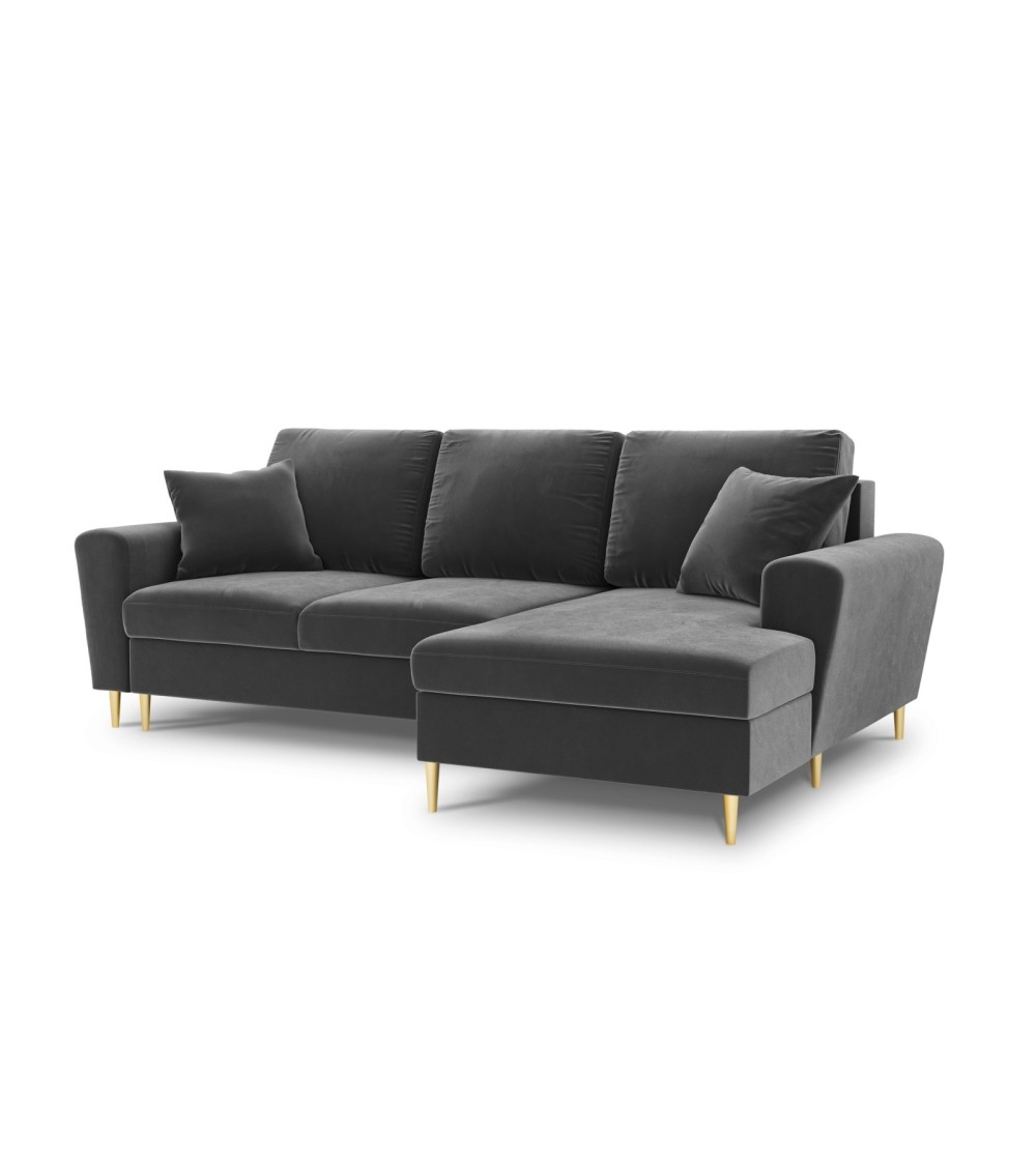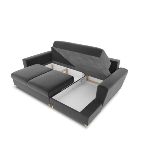 Canapé d'angle droit convertible 4 places en tissu velours gris clair