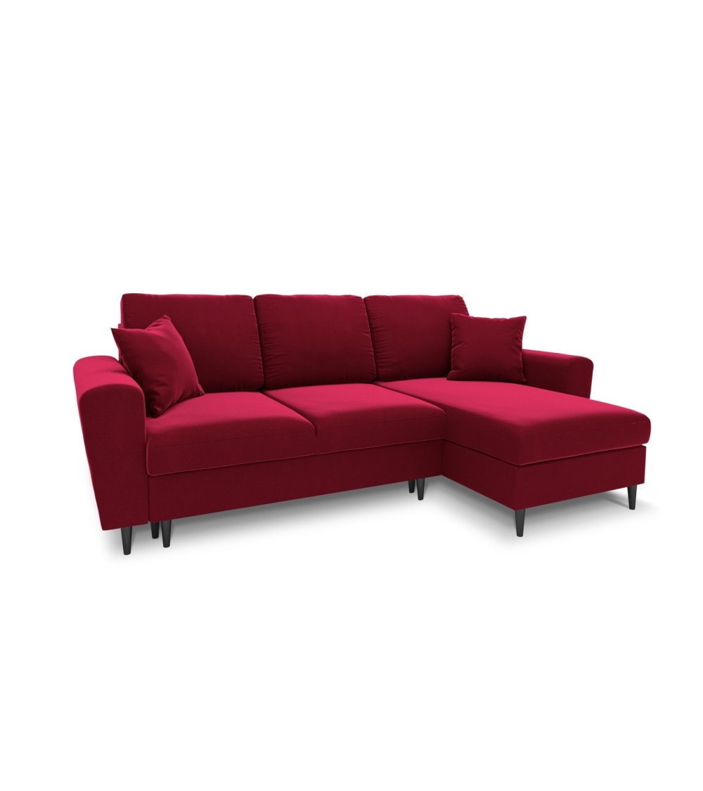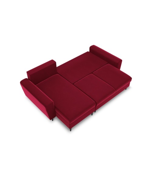 Canapé d'angle reversible, convertible 4 places en tissu velours rouge