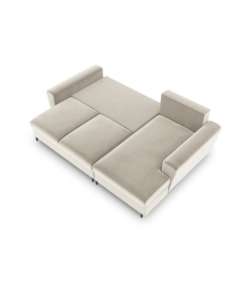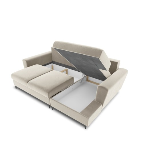 Canapé d'angle droit convertible 4 places en tissu velours beige