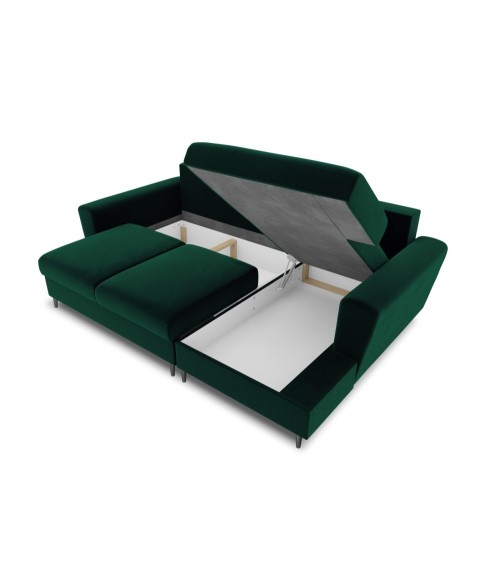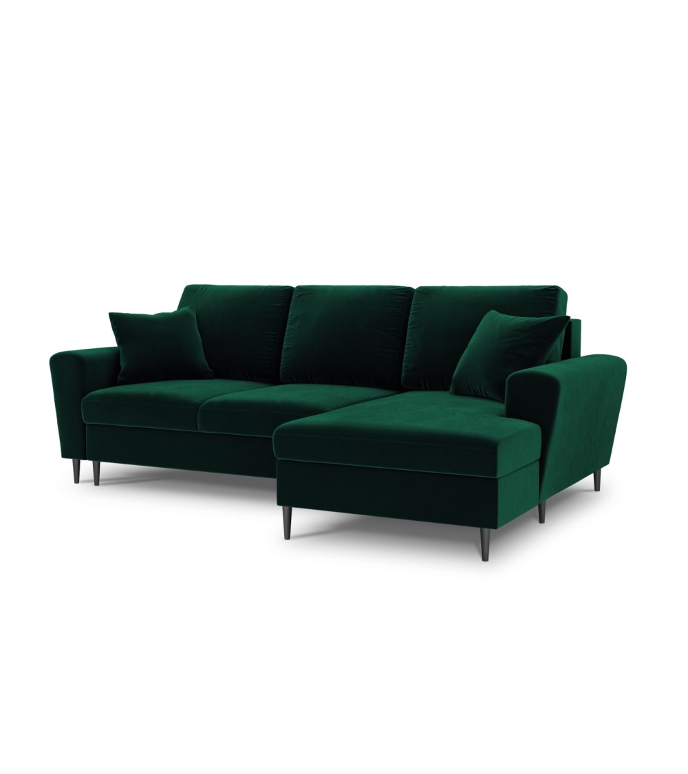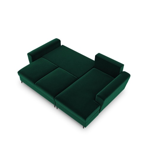 Canapé d'angle droit convertible 4 places velours vert bouteille