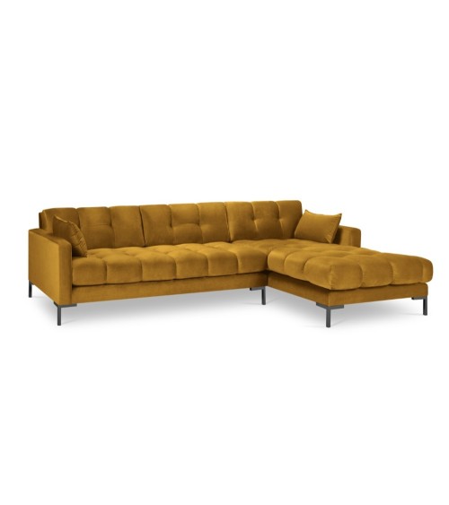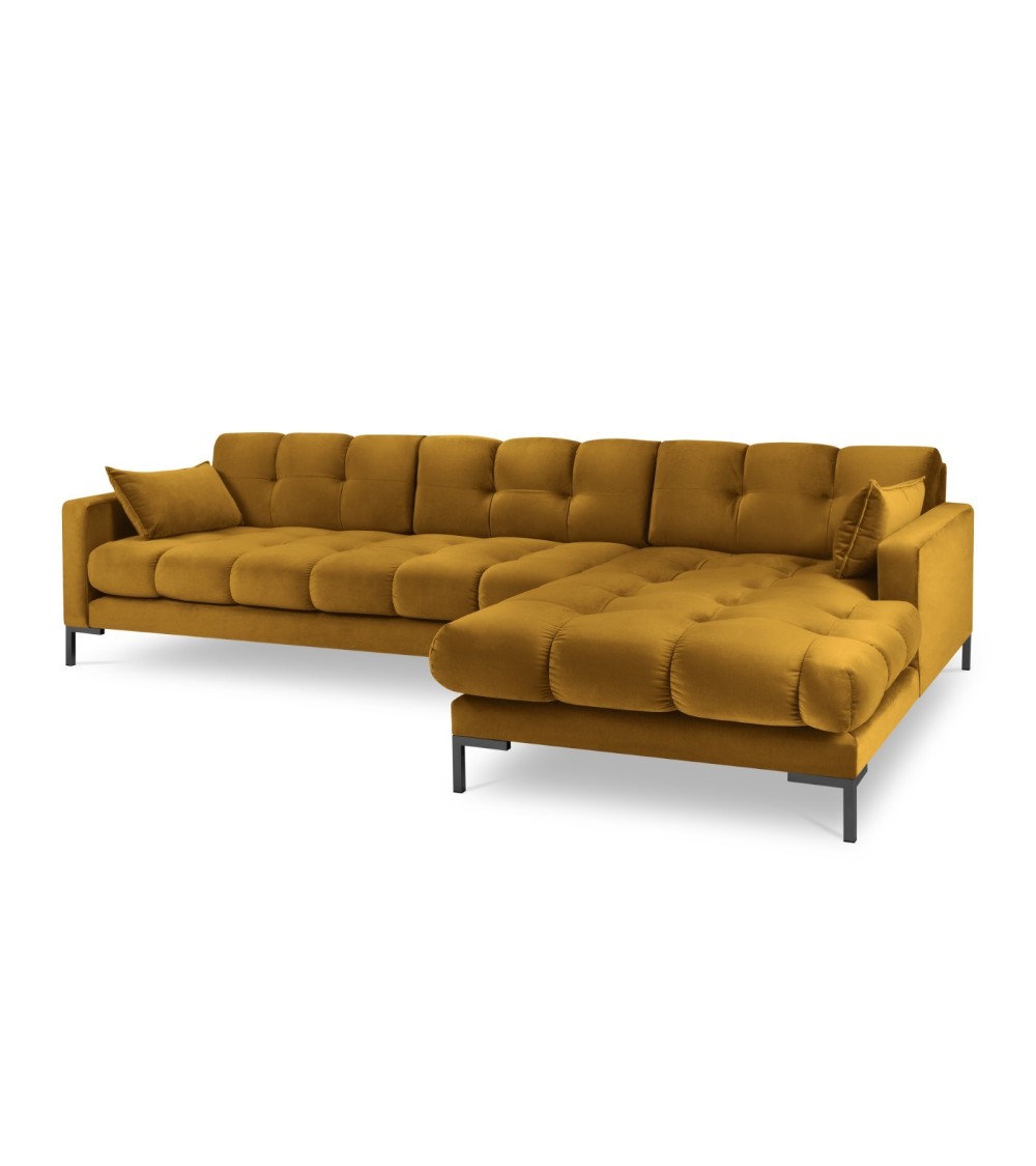 Canapé d'angle droit 5 places en tissu velours jaune