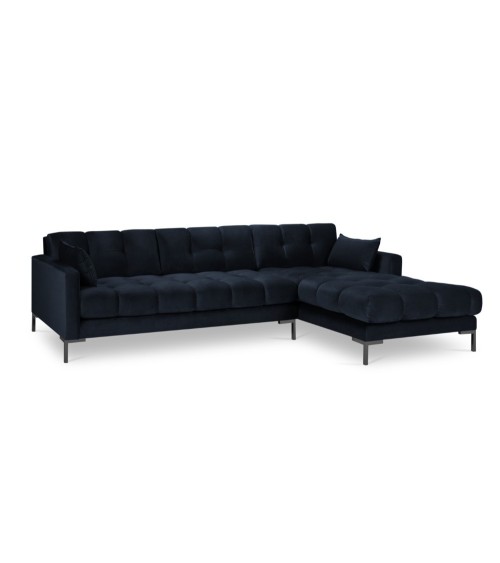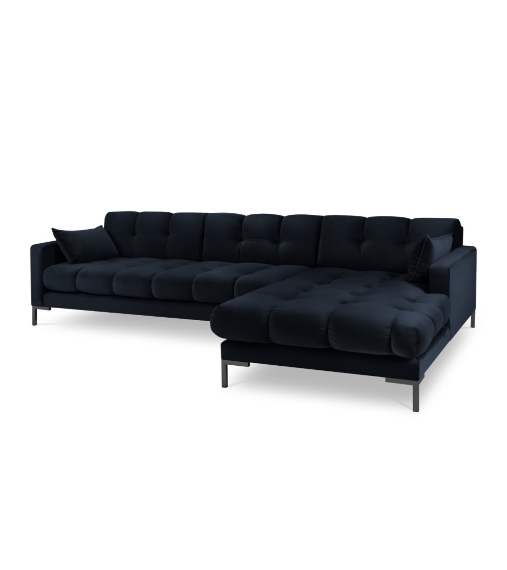 Canapé d'angle droit 5 places en tissu velours bleu foncé