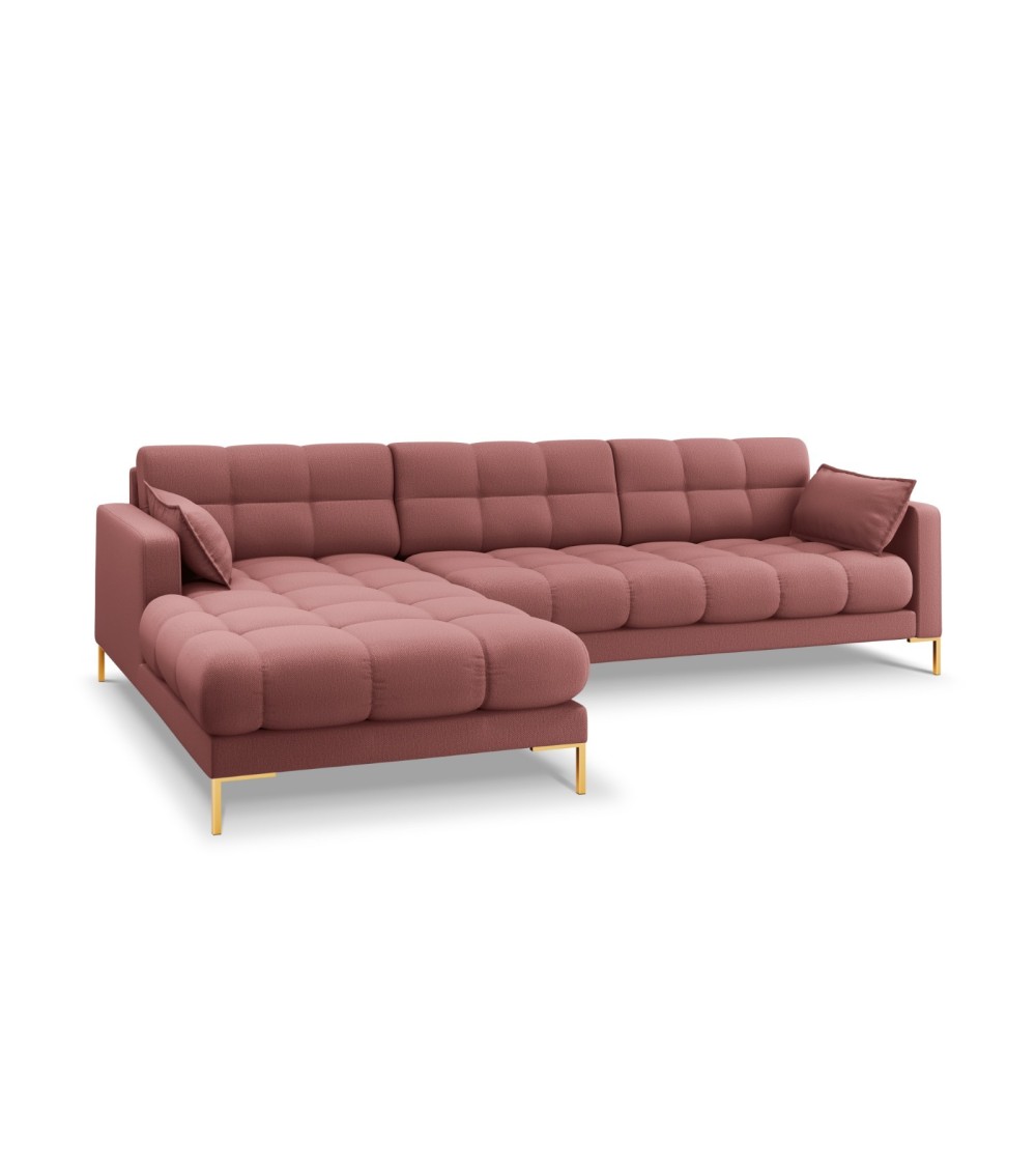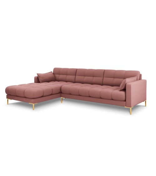 Canapé d'angle gauche 5 places en tissu structurel rose