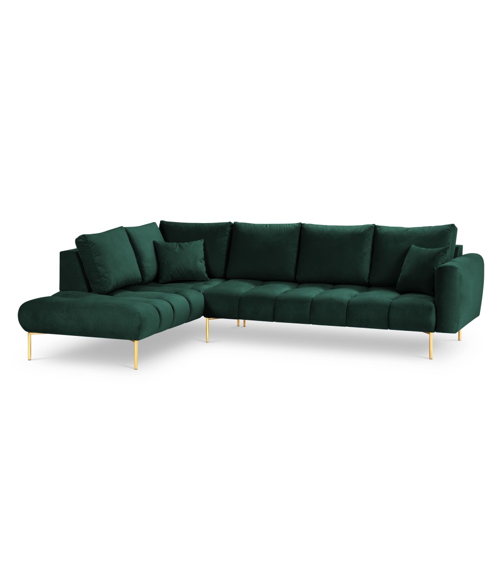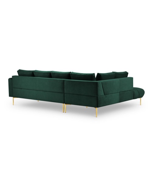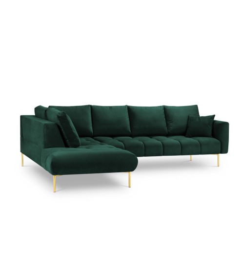 Le canapé d'angle Malvin crée une atmosphère chaleureuse et élégante au sein de votre intérieur ! Confortable et accueillant, ce canapé est doté d'un siège touffeté et de grands coussins en peluche pour le dossier et les côtés. Détente assurée. Son revêtement en velours lui donne un look exceptionnel tandis que ses pieds métalliques arrondis noirs ou dorés qui surélèvent le canapé au-dessus du sol le rend pratique puisqu'il devient facile de passer l'aspirateur.