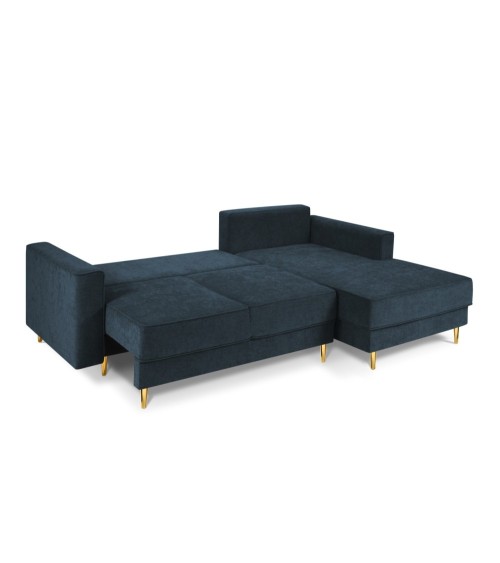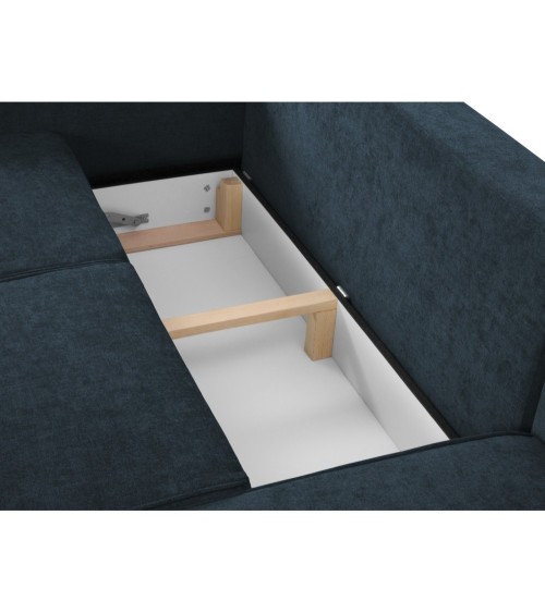 Canapé d'angle 4 places en tissu structuré bleu foncé