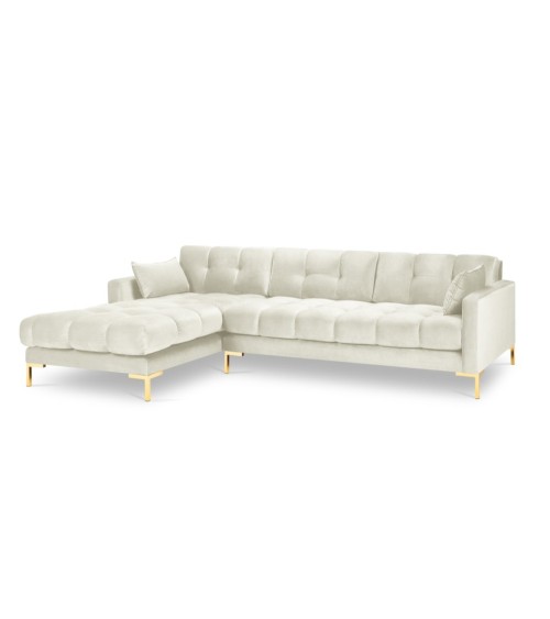 Canapé d'angle gauche 5 places en tissu velours beige clair