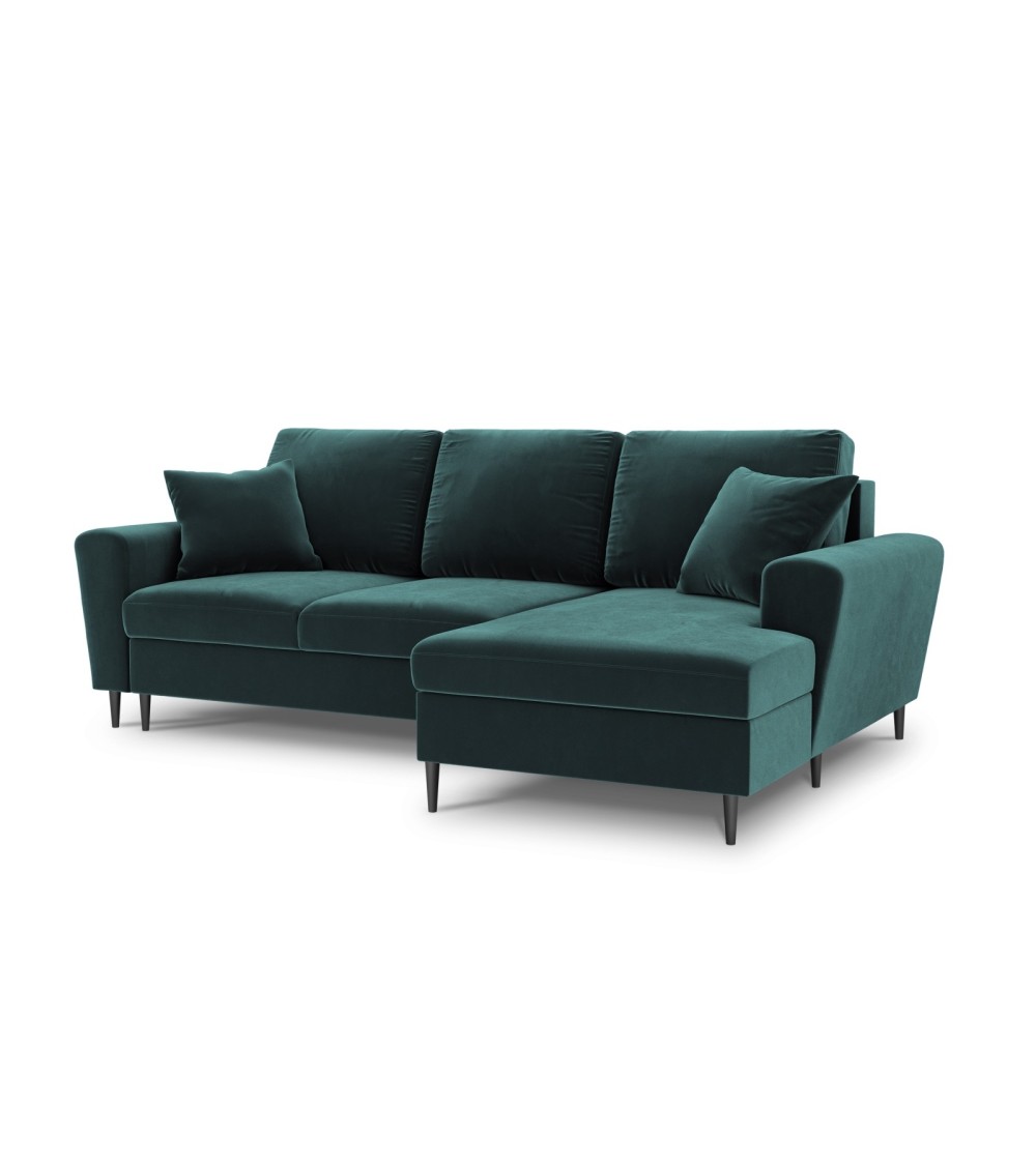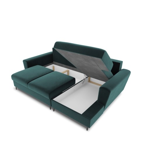 Canapé d'angle droit convertible 4 places en tissu velours pétrole
