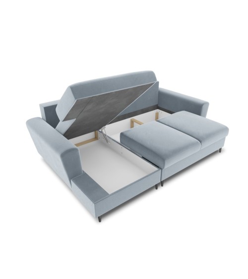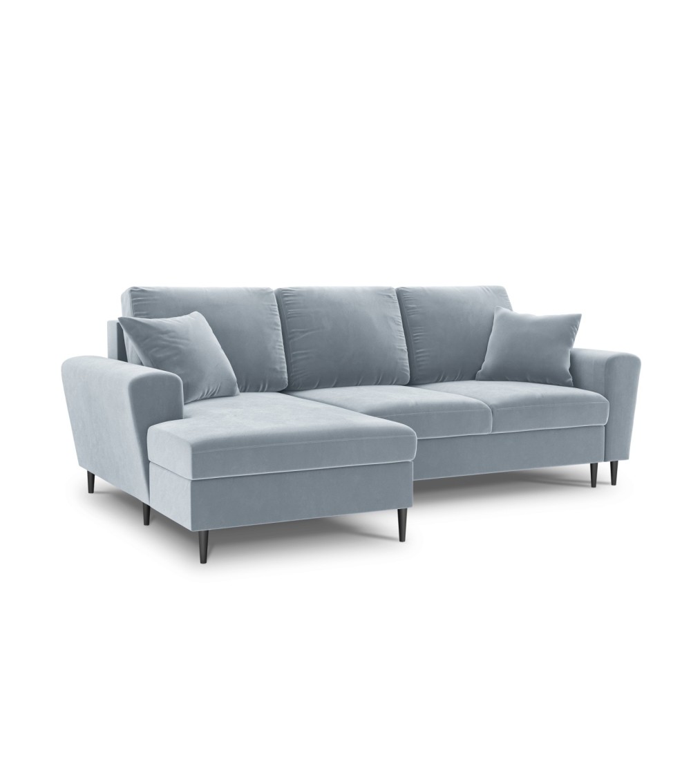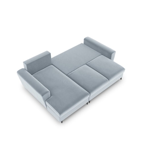Canapé d'angle gauche convertible 4 places en tissu velours bleu clair