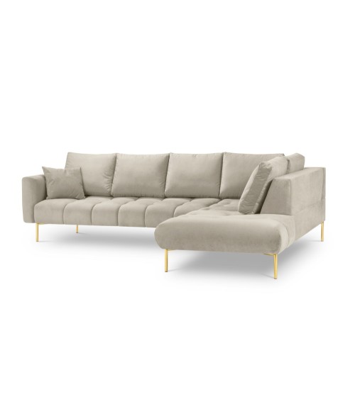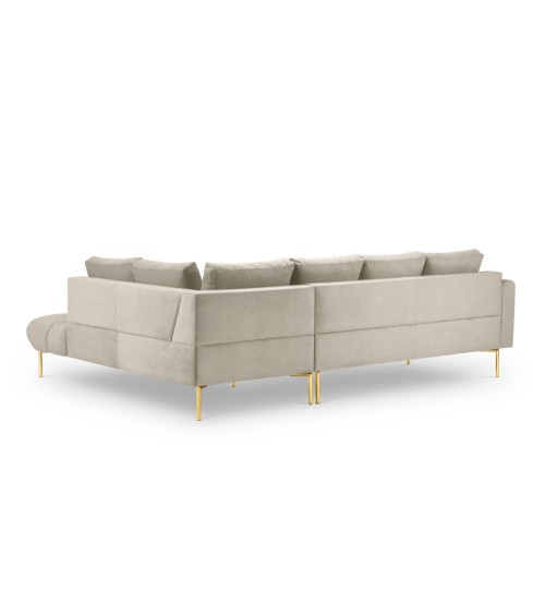 Le canapé d'angle Malvin crée une atmosphère chaleureuse et élégante au sein de votre intérieur ! Confortable et accueillant, ce canapé est doté d'un siège touffeté et de grands coussins en peluche pour le dossier et les côtés. Détente assurée. Son revêtement en velours lui donne un look exceptionnel tandis que ses pieds métalliques arrondis noirs ou dorés qui surélèvent le canapé au-dessus du sol le rend pratique puisqu'il devient facile de passer l'aspirateur.
