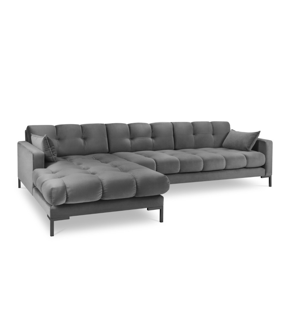 Canapé d'angle gauche 5 places en tissu velours gris clair