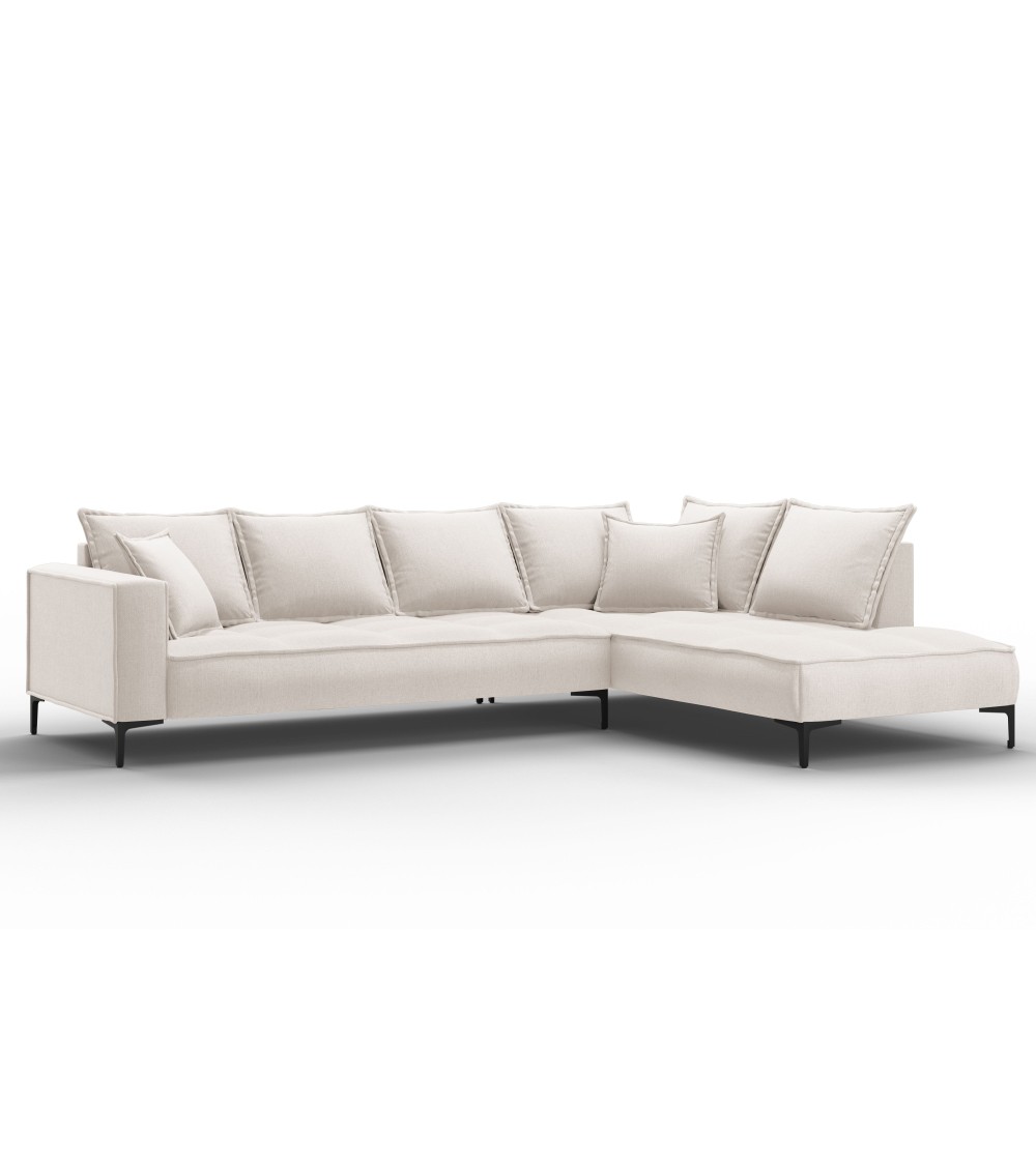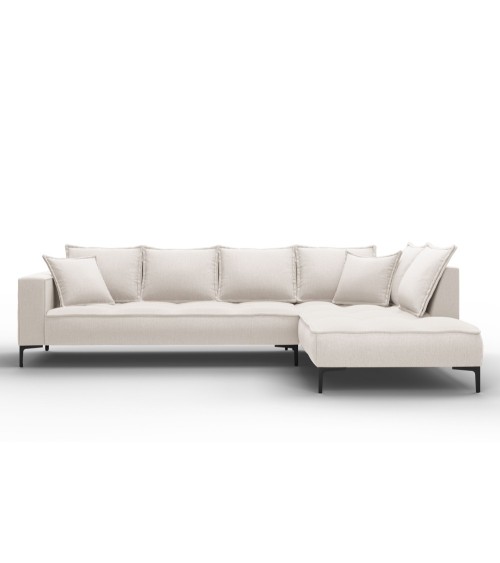 Canapé d'angle 5 places en tissu structuré beige clair