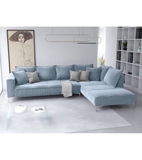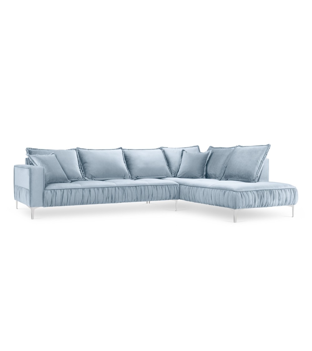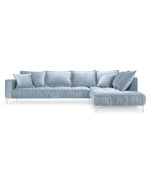 Le canapé d'angle en velours Jardanite est incroyablement élégant et tout en modernité. Il se distingue par ses détails uniques et ses formes sublimes. Ses volants décoratifs lui donnent un look unique, ses sièges sont profonds et larges et ses grands accoudoirs le rendent très confortable. Son revêtement en velours disponible dans plusieurs couleurs lui donne un style doux et audacieux. Le canapé d'angle Jardanite repose de solides pieds en métal argenté et se marie très bien avec dautres pièces de la collection.