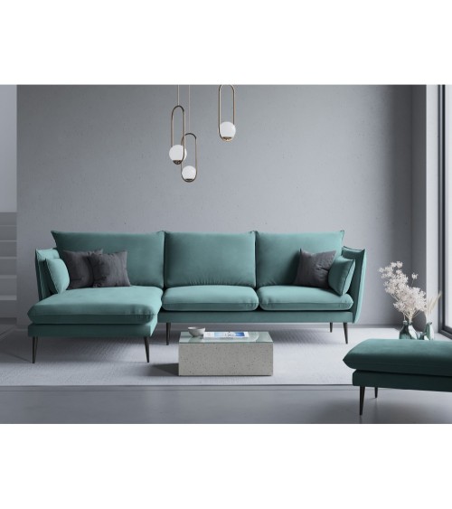 La collection Agate combine élégance et petites touches de modernité. Très confortable pour toute la famille, trouvez la pièce qui correspond le mieux à vos besoins ! Vous découvrirez dans cette collection un canapé d'angle, un canapé 4 places, un canapé 3 places et un canapé 2 places ainsi qu'un fauteuil, une chaise longue et un pouf. Tous ont un design épuré avec de grands coussins confortables et de beaux pieds métalliques fins en diagonale, dorés ou noirs. Leur revêtement en velours ajoute de la chaleur qui sera superbe dans nimporte quel intérieur.