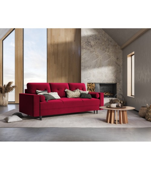 Leona combine esthétisme et fonctionnalité. Le canapé trois places et le canapé d'angle ont tous deux une fonction de couchage, de sorte que vous pouvez facilement transformer le canapé en un lit confortable. Leur proportion équilibrée, leurs boutons sur les coussins du dossier et leurs coussins ronds supplémentaires en font une collection simple mais moderne. Leur design intemporel résistera certainement aux tendances passagères et nous sommes certains que ces modelés resteront longtemps dans votre intérieur.