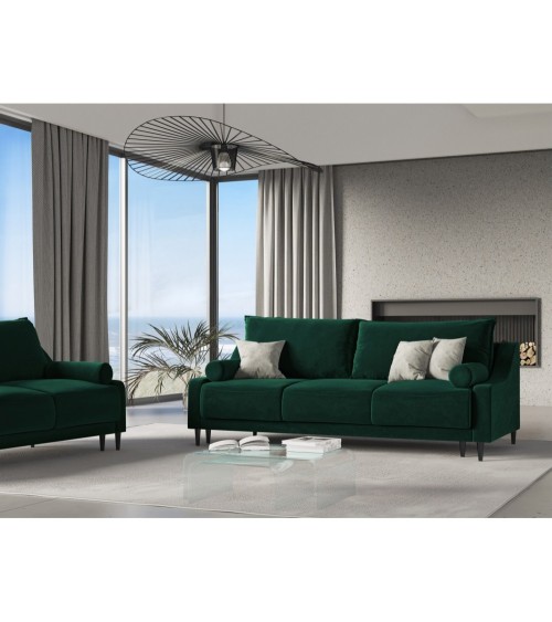 Le canapé Rutile 3 places est le choix rêvé des familles ! Confortable et accueillant, il se transforme facilement en lit. Il dispose également de grands espaces de rangement et son design est épuré. La forme des accoudoirs est ondulée, les grands coussins de dossier sont accueillants et les coussins latéraux ont la forme de rouleaux décoratifs. Le revêtement en velours, disponible dans plusieurs couleurs, en fait une pièce incontournable tandis que les pieds en métal chromés noirs sont subtils et presque imperceptibles.