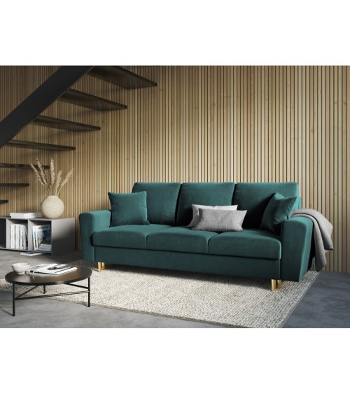 Canapé convertible 3 places en tissu velours pétrole