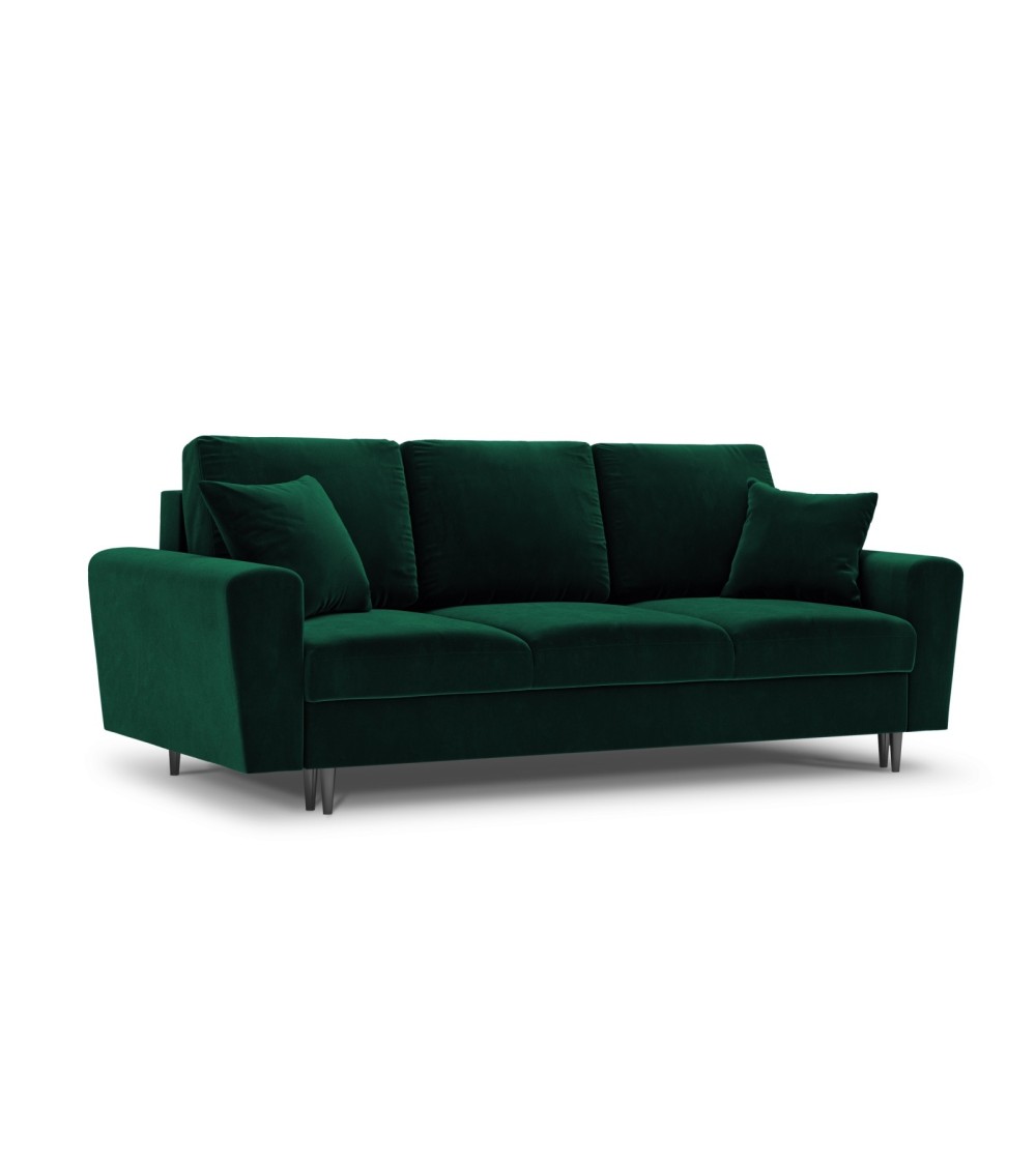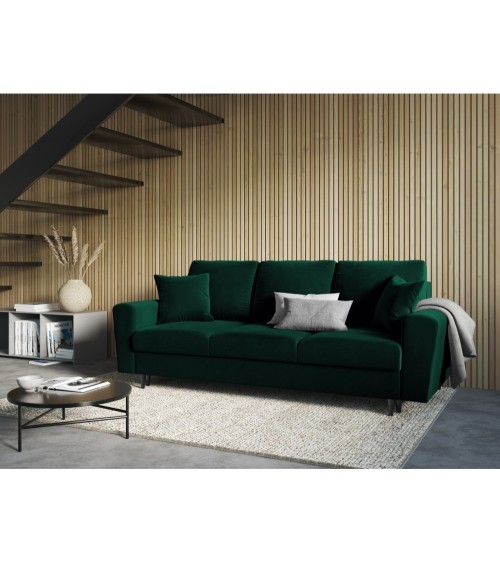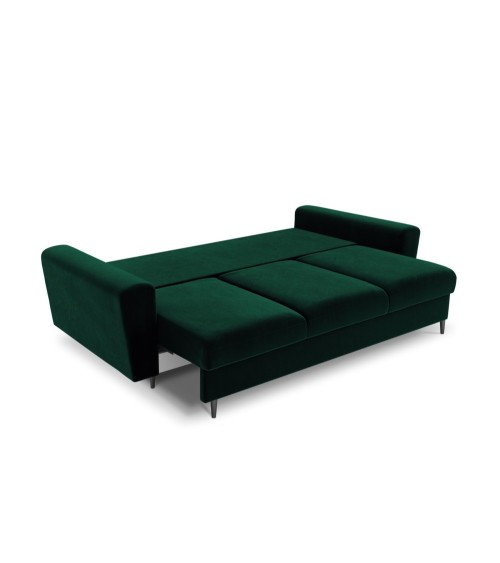 Canapé convertible 3 places en tissu velours vert bouteille