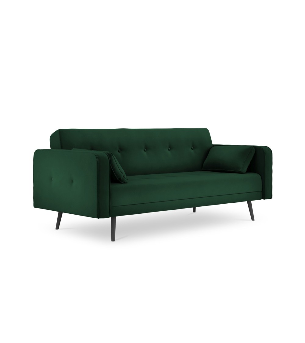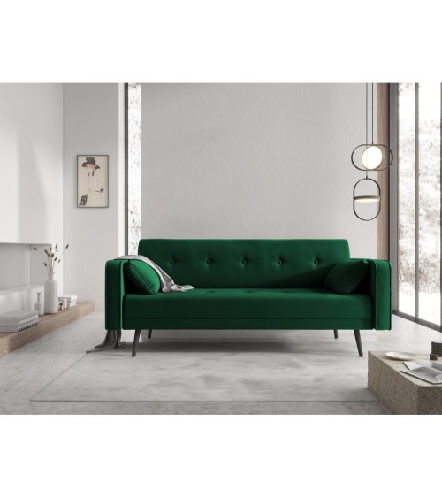 Le canapé-lit Jasper 3 places s'inspire du style scandinave pour un intérieur tout en modernité. Habillé dun revêtement en velours ou en tissu structurel, ce canapé repose sur un ensemble de pieds inclinés en bois de hêtre surélevés en finition bois naturel ou noir. Lassise compte une rangée de boutons décoratifs et de larges coussins lui donnent un style unique. Les accoudoirs de largeur moyenne viennent souligner la silhouette du canapé. Grâce à son système clic-clac, il se transforme rapidement et facilement en un lit confortable pour la nuit. Disponible en plusieurs couleurs, le canapé 3 places Jasper sintègre parfaitement dans votre intérieur.