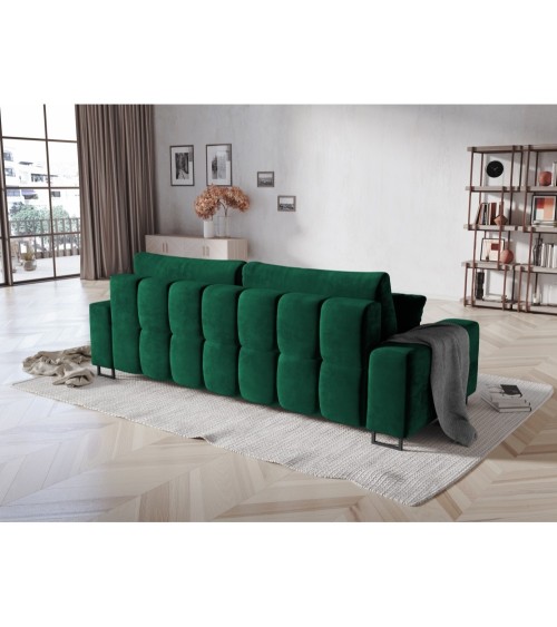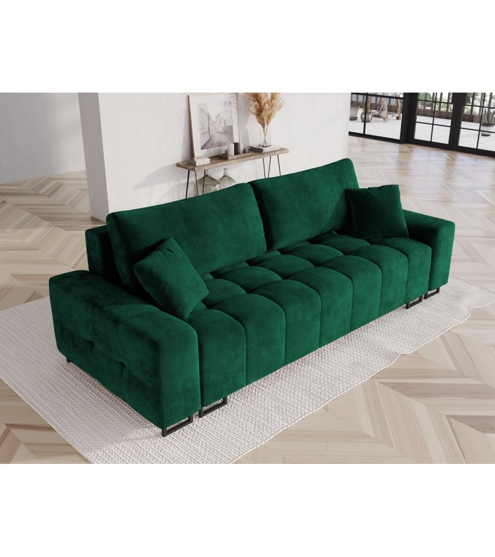 Voici un canapé que vous voudrez montrer au monde entier ! Ce canapé 3 places Byron est de grande qualité ! Grâce à son touffetage sur l'ensemble du siège et du dossier, il sera parfait au cur dune pièce de vie. Il est spacieux sans paraître encombrant et est extrêmement accueillant et confortable. Le tissu en velours brillant et les grands coussins du dossier vous invitent à vous asseoir et sa taille généreuse en fait un lit d'invité fantastique. Il dispose non seulement d'un grand espace de couchage, mais aussi d'un rangement intégré pour la literie. Les pieds métalliques géométriques noirs viennent compléter le style du canapé et il est disponible dans plusieurs couleurs.