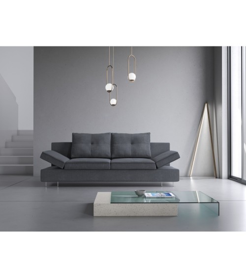 Avec Zircon, vous bénéficiez dun canapé et dun lit 2 en 1 ! En le choisissant, vous ajoutez une touche de modernité à votre salon qui se transforme facilement en un espace de couchage confortable lorsque vous en avez besoin. Le canapé Zircon 2 places est compacte et sadapte facilement à vos goûts grâce à ses accoudoirs mobiles qui lui donnent une allure contemporaine. Le revêtement en tissu structuré assure une excellente durabilité et un grand confort. Les coussins de dossier et les sièges rembourrés ont un design touffeté et ses pieds métalliques argentés sont subtils.