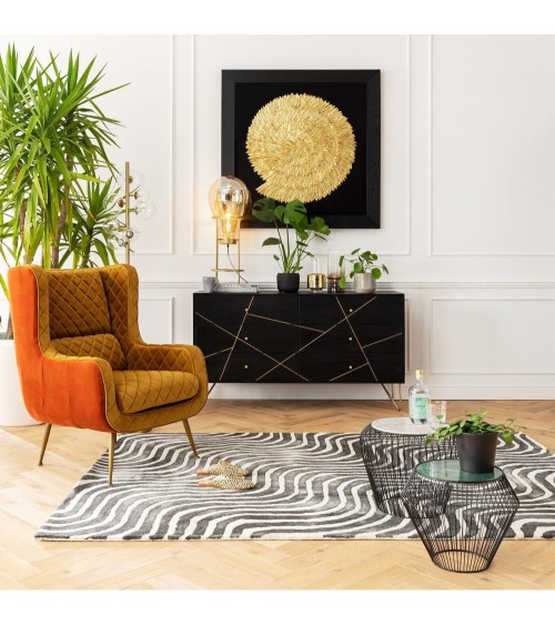 Ce fauteuil s'inscrit dans un design rétro avec son assise toucher velours aux angles arrondis et ses pieds aux extrémités en boules. Sa face avant matelassée ocre contraste avec l'arrière lisse d'un marron cuivré. Capacité de charge maximale : 150 kg. Hauteur d'assise : 45-48 cm. Livré avec les pieds démontés. Entretien : enlevez les miettes et la poussière avec une brosse douce ou l'aspirateur. Vérifiez que votre produit de nettoyage ne décolore pas le tissu en l'essayant d'abord sur une zone non visible (par exemple sous l'assise).