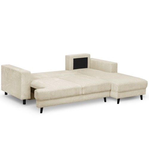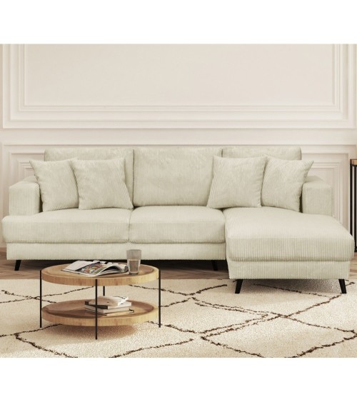 Canapé d'angle droit convertible 4 places en velours côtelé beige