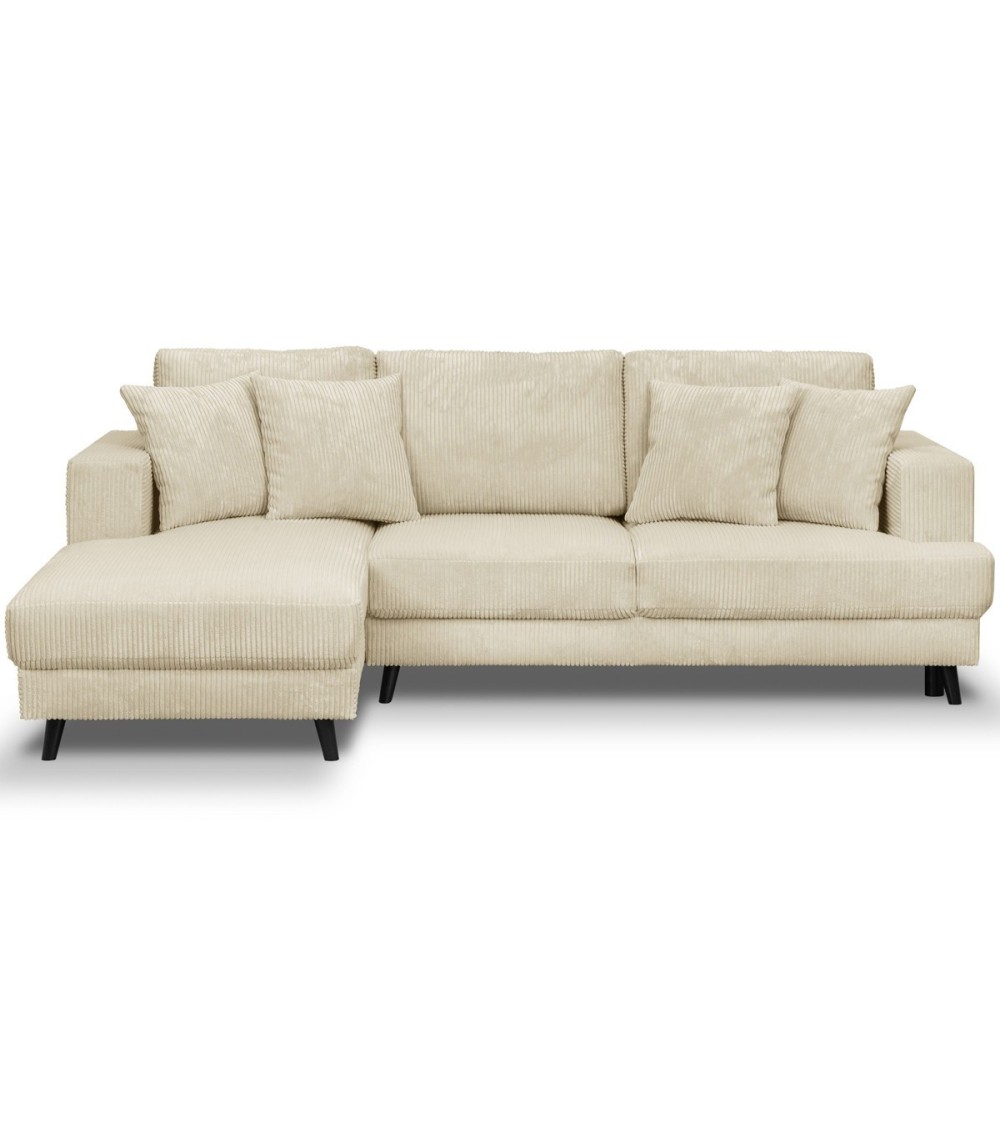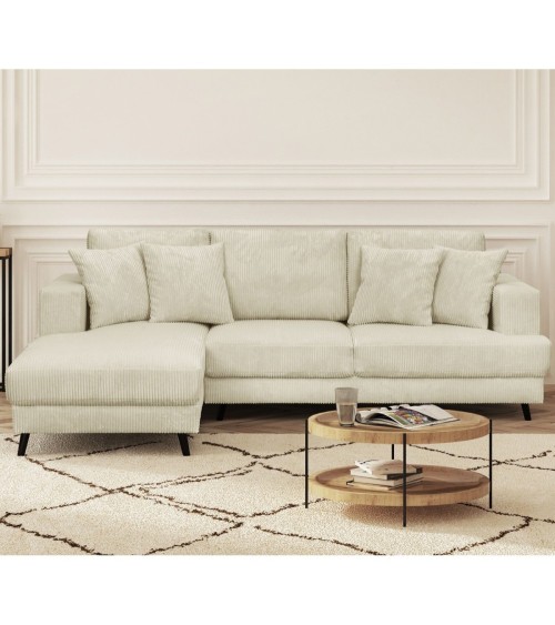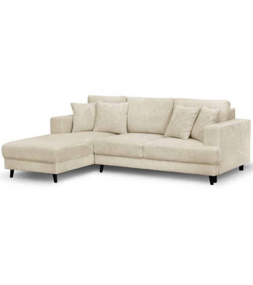 Canapé d'angle gauche convertible 4 places en velours côtelé beige