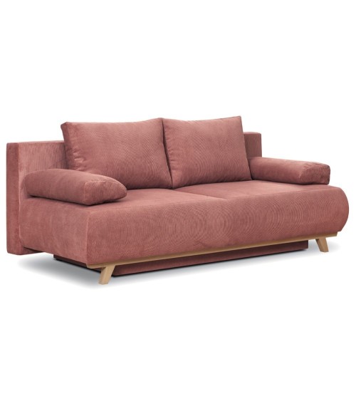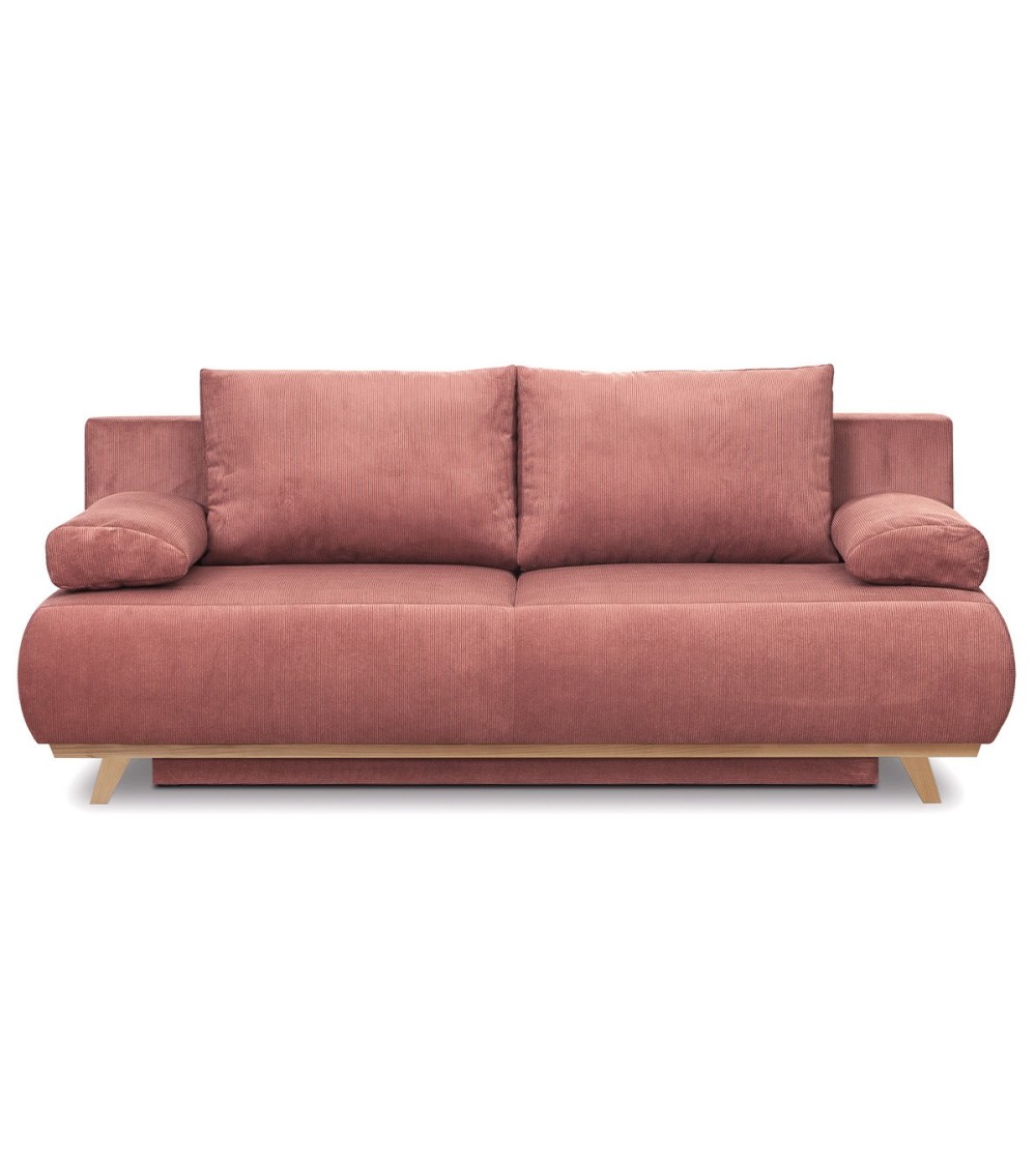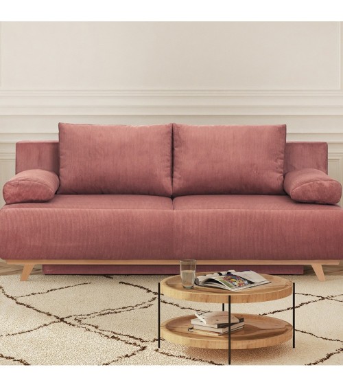 - Canapé convertible avec coffre de rangement - Laria - Nombre de places : 3 - Couleur : terracotta - Revêtement : Velours fines côtes 92% polyester 8% Polyamide - 280 g/m² certifié Oekotex® - Structure en pin et panneaux de particules certifiées FSC - Assise en mousse de polyuréthane 30 kg/m3 - Suspension d'assise en ressorts biconiques Bonnel - Piètement en bois massif vernis naturel - Livré avec 2 coussins rectangulaires - Hauteur de l'assise : 41 cm - Dossier : épaisseur 19 cm + coussins 22 cm - La profondeur de l'assise varie en fonction de l'inclinaison des coussins du dossier : 54 cm (coussins très droits) - 45 à 50cm (coussins inclinés) - Dimensions du couchage : 140 x 192 cm - Dimensions totales : 191x95x83 cm - Poids du produit : 70 kg - Garantie 2 ans