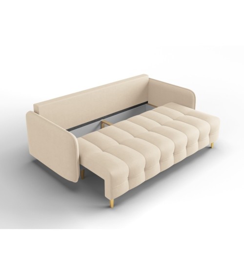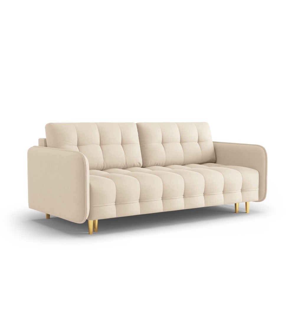 Le canapé Scaleta combine fonctionnalité et design raffiné. Sa forme simple est parsemée de détails qui attirent le regard. Les accoudoirs délicats et arrondis possèdent des bordures élégantes et un motif orne le siège. Les coussins doux et nettement matelassés offrent un confort exceptionnel tandis que les subtils pieds en métal brillant apportent une finition élégante au canapé. Le canapé trois places Scaleta apporte un design intéressant à votre intérieur, et grâce à sa fonction de couchage, il peut également servir de lit pour vous ou vos invités.