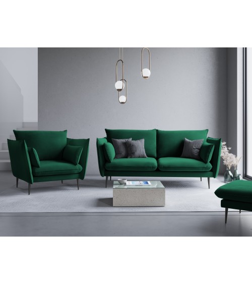 La collection Agate combine élégance et petites touches de modernité. Très confortable pour toute la famille, trouvez la pièce qui correspond le mieux à vos besoins ! Vous découvrirez dans cette collection un canapé d'angle, un canapé 4 places, un canapé 3 places et un canapé 2 places ainsi qu'un fauteuil, une chaise longue et un pouf. Tous ont un design épuré avec de grands coussins confortables et de beaux pieds métalliques fins en diagonale, dorés ou noirs. Leur revêtement en velours ajoute de la chaleur qui sera superbe dans nimporte quel intérieur.