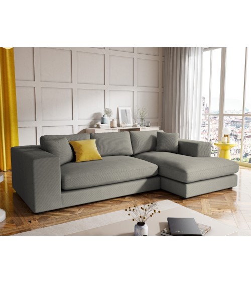 Canapé d'angle 5 places en tissu structuré gris clair