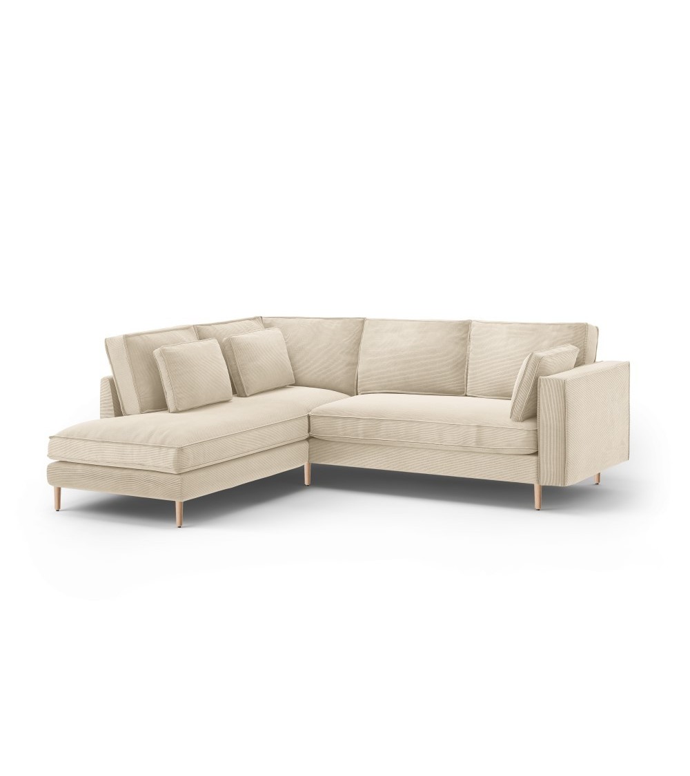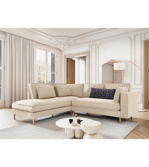 Canapé d'angle 5 places en tissu structuré beige clair