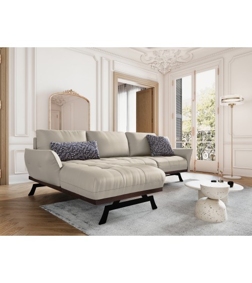 Canapé d'angle 4 places en cuir cuir gris clair