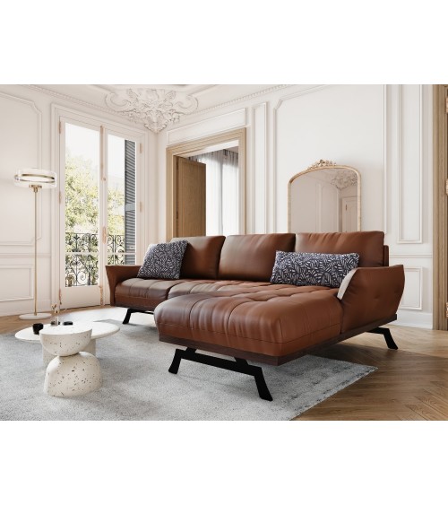 Canapé d'angle 4 places en cuir cuir marron