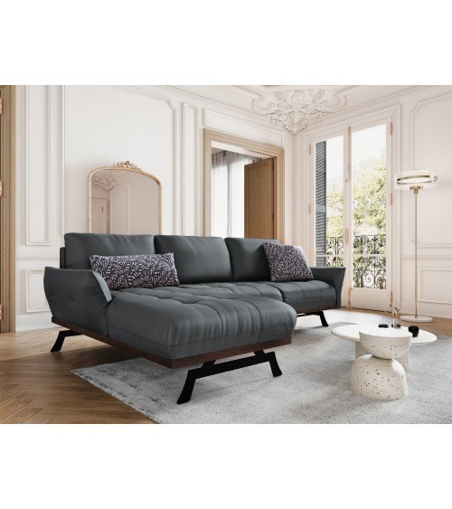 La collection Olivier se distingue par un design intemporel. Le cadre en bois foncé et les pieds en métal confèrent à la collection un caractère noble et élégant. Des accoudoirs profilés, une assise matelassée et des coussins-appuie-tête supplémentaires assurent le plus haut niveau de confort. La collection Olivier a été créée pour les pièces spacieuses et comprend un canapé d'angle, une chaise longue, un fauteuil et un appui-tête supplémentaire.