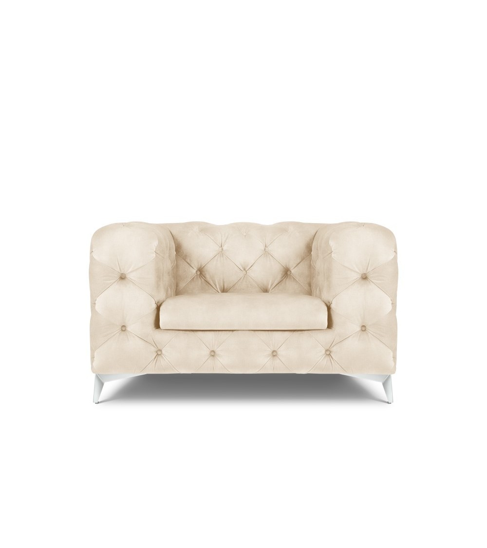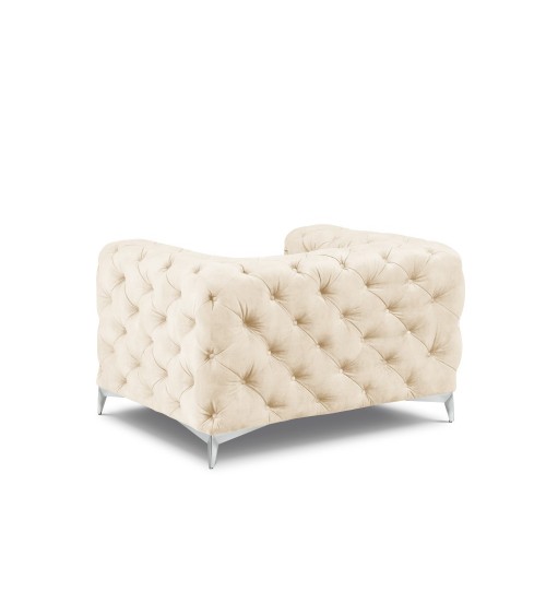 La ligne Violane présente un design spectaculaire et met en valeur n'importe quel salon ! Les boutons de chaque meuble sont recouverts dun joli tissu et les accoudoirs sont très larges. Les tissus sont doux et résistants à l'abrasion de sorte quils peuvent être utilisés pendant des années. Les pieds en métal, bien que de forme fantaisiste, sont également très résistants.