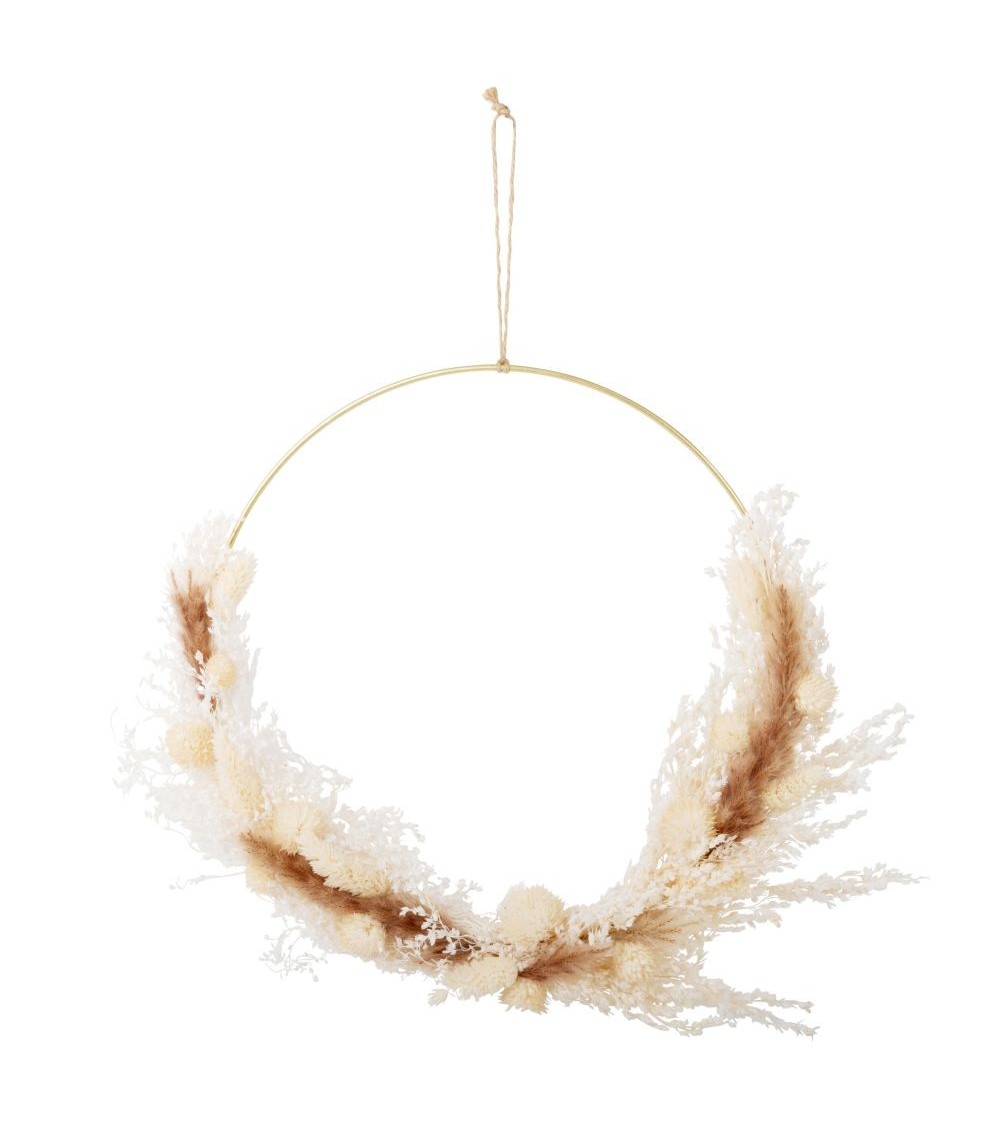 Déco couronne murale en métal, corde et élément naturel séché D30
