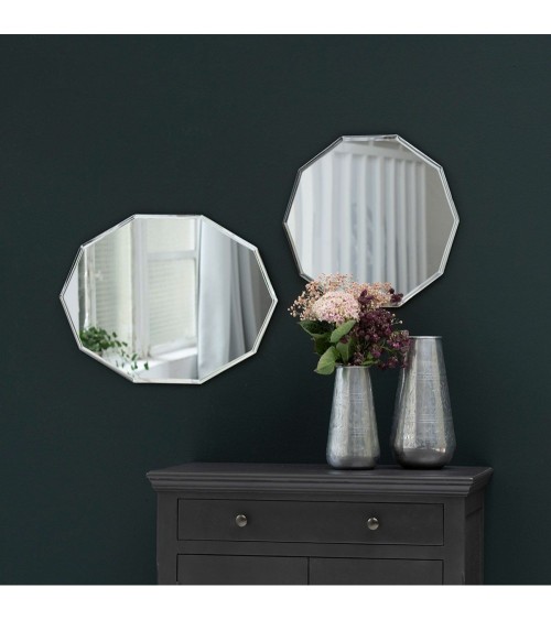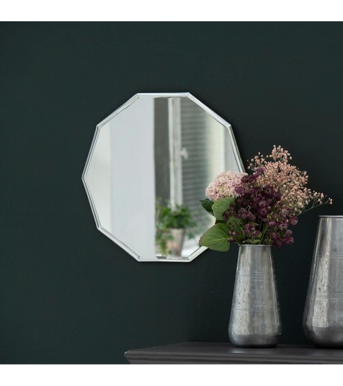 Joli miroir décagonal biseauté signé Decoclico, qui apportera un charme géométrique à votre déco ! Ce miroir est rythmé par 10 côtés et une finition en biseau selon le même principe que pour les miroirs d´antan. On l´imagine aussi bien au.dessus d´une vasque dans une salle de bain rétro, que dans une chambre au.dessus d´une commode ou sur un mur en tête de lit associé avec la version ronde de ce miroir décagonal. Ce miroir est proposé en 2 formes - rond ou ovale, que vous pourrez disposer dans les 2 sens. N'hésitez pas à accentuer son côté broc avec un papier peint vintage.
