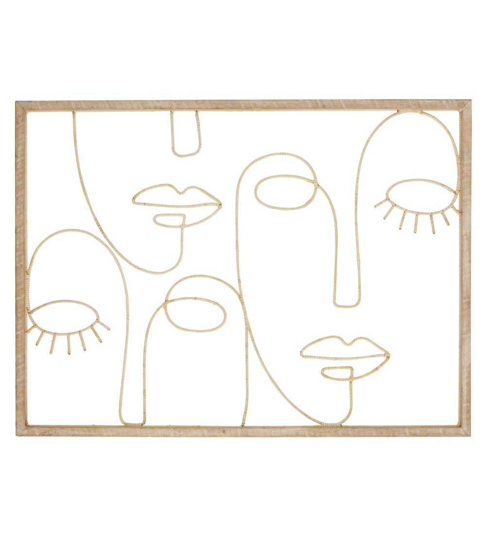 Dans son encadrement en bois, la décoration murale PERTH donne une nouvelle version du line art ! Sur une structure en métal, le tressage de rotin révèle des motifs de visages qui donneront une tonalité vintage à vos murs Une décoration signée Maisons du Monde !