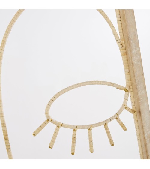 Déco murale visages abstraits en bois de pin et rotin beige 121x88