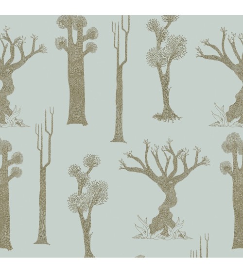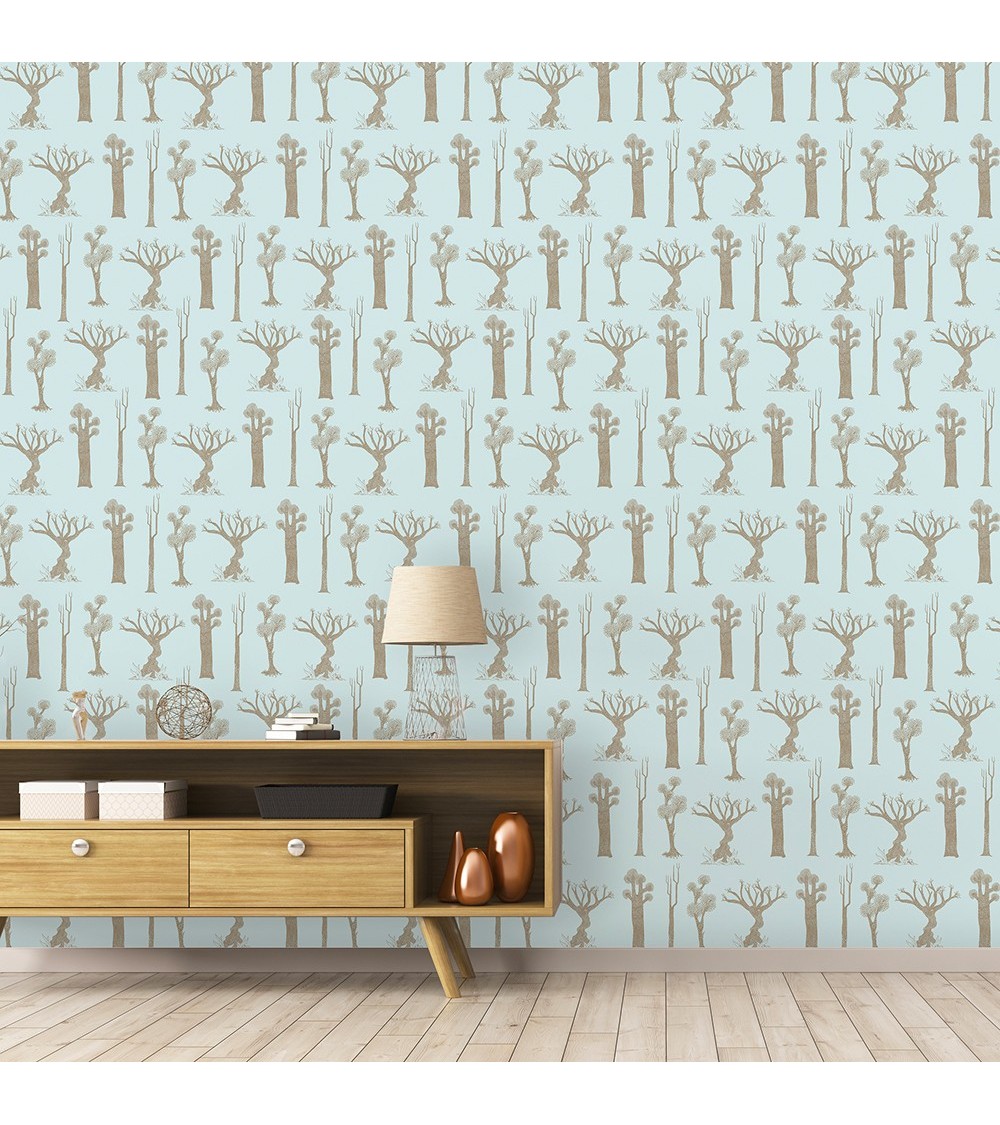 Papier peint brun et bleu gris imprimé nature